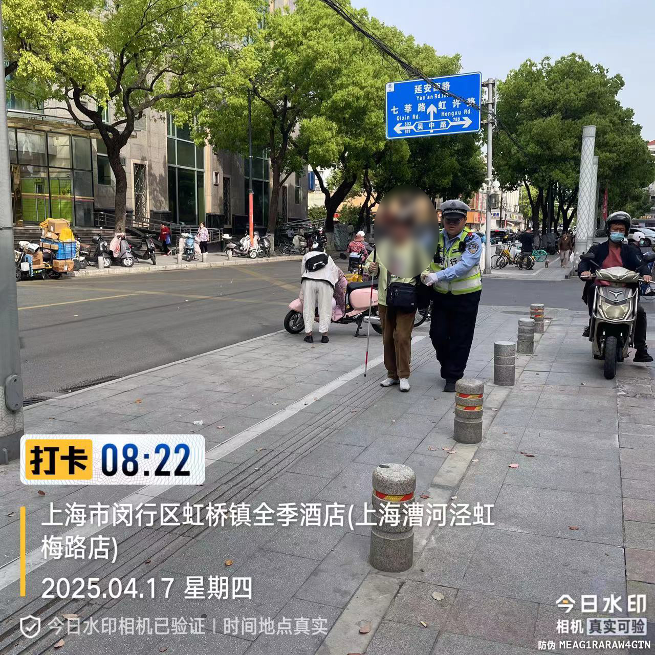 4月17日,宗保公司駐閔行區(qū)虹橋交通管理輔助項目員工郭明皓執(zhí)勤中,熱心幫助一位盲人老人安全乘車,用實際行動傳遞了社會溫暖與正能量。