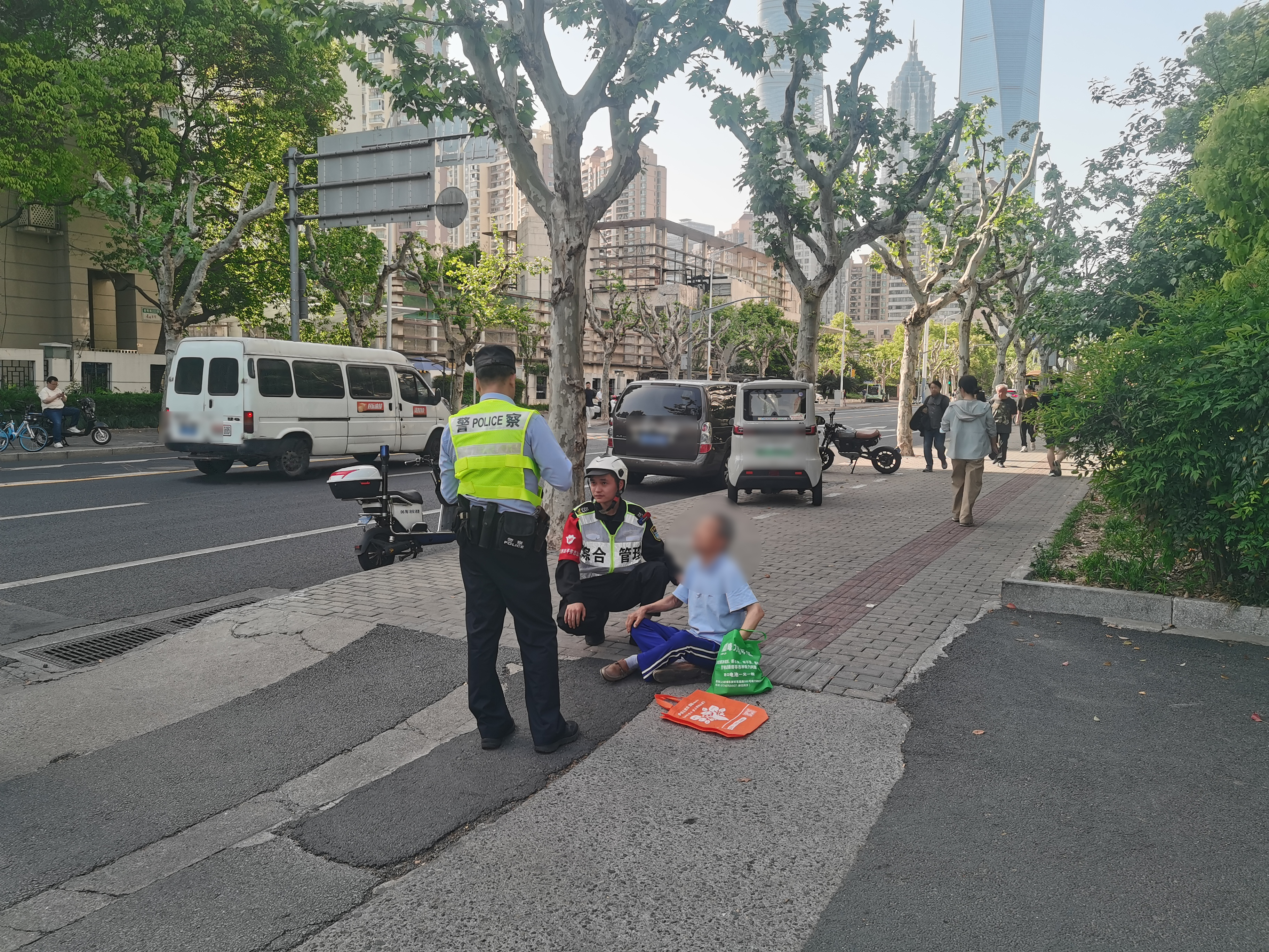 當日15時25分,卜瑞在張楊路盒馬鮮生附近例行巡查時,發(fā)現(xiàn)一位老人不慎摔倒在地,便立即上前查看情況。老人雖倒地但意識清醒,卜瑞在確認老人身體無大礙后,迅速幫助聯(lián)系其家屬,并同步將情況報告至城運指揮中心。