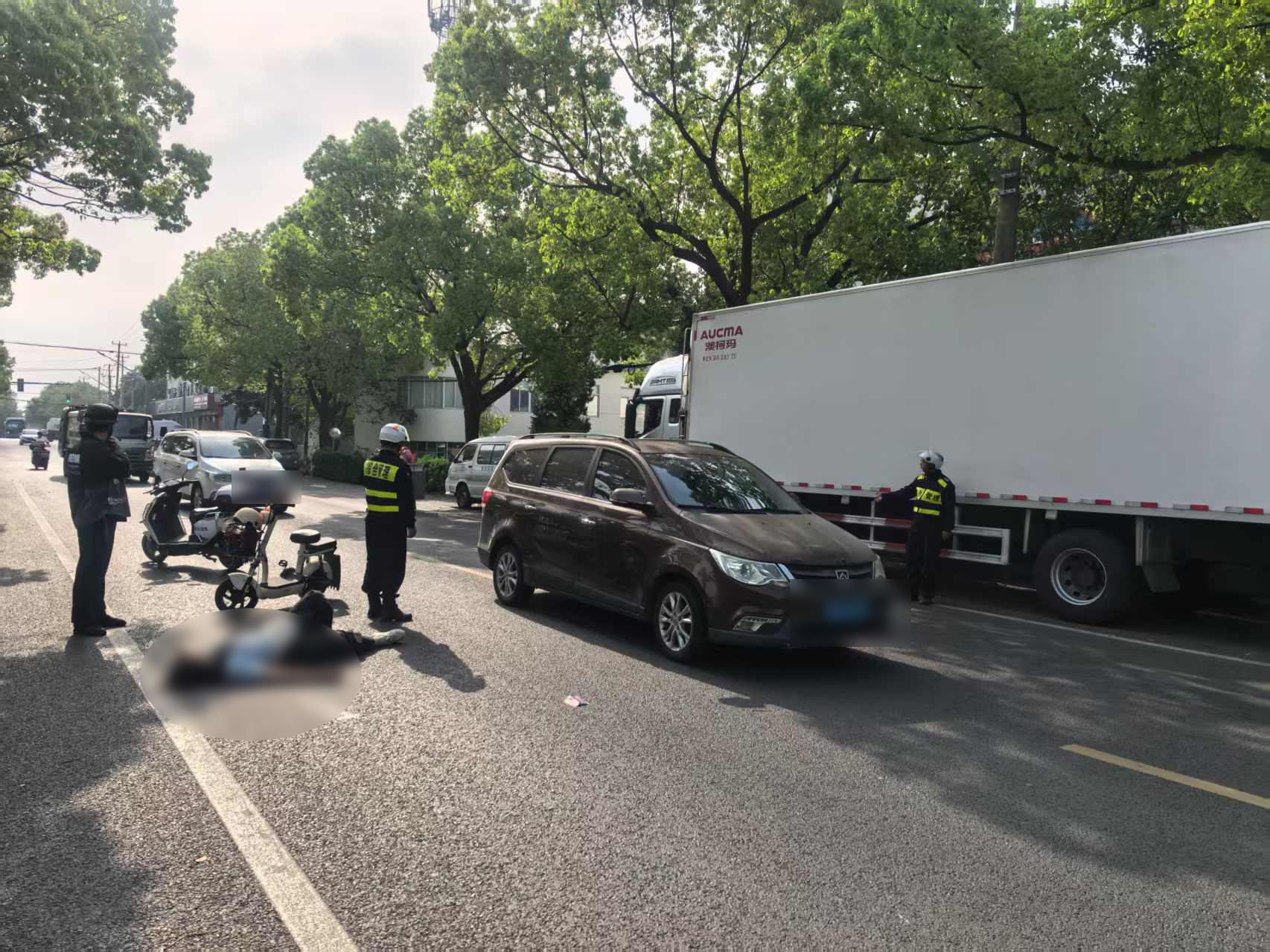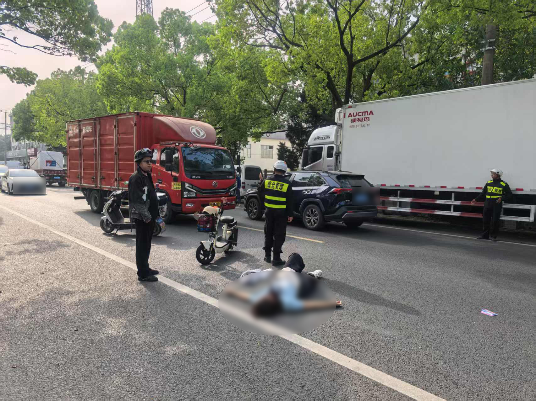 當日7時53分,黃建成和朱智龍在周祝公路建設(shè)路巡查時,發(fā)現(xiàn)一名女子騎電瓶車不慎摔倒。由于未佩戴頭盔,女子頭部著地后當場失去意識,情況十分危急。面對突發(fā)狀況,兩人迅速反應(yīng),第一時間撥打了120急救電話并報警求助。