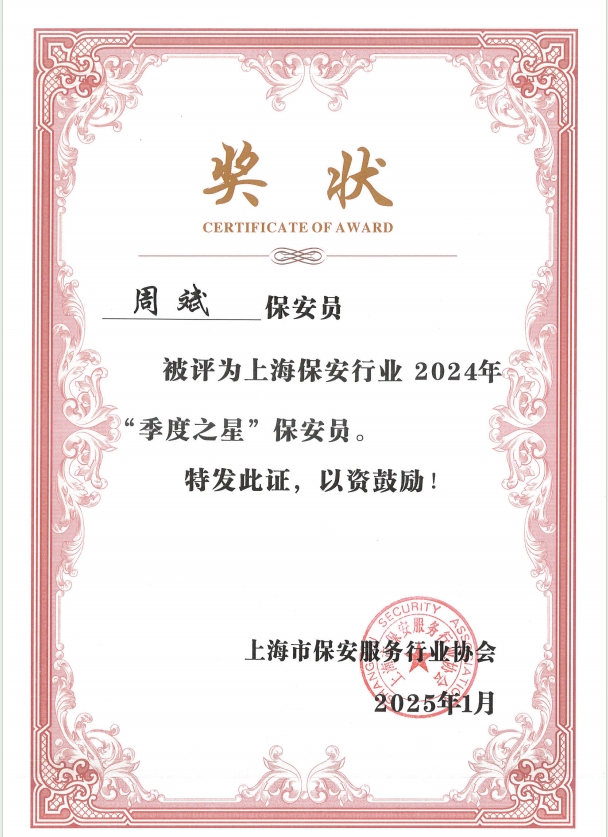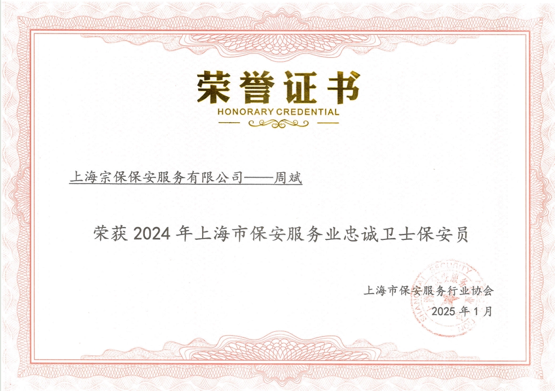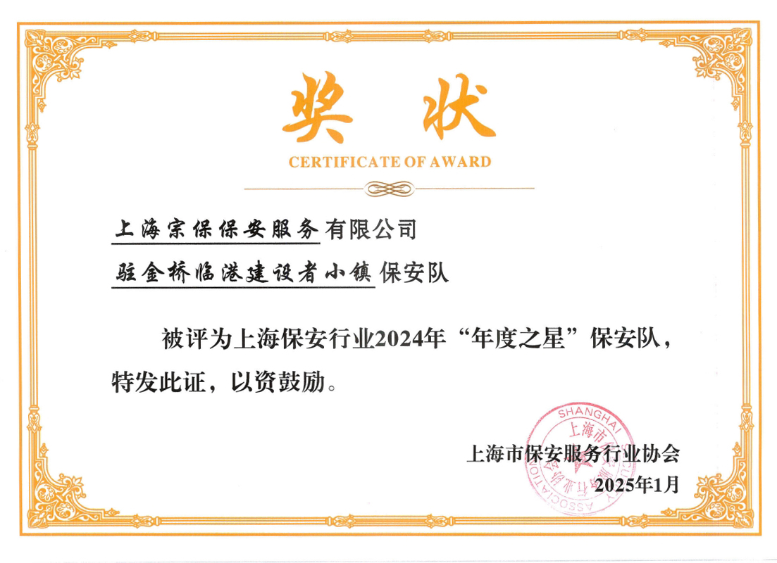 近日,上海市保安服務(wù)行業(yè)協(xié)會公布了“忠誠衛(wèi)士”保安員、“年度之星”保安隊、“季度之星”保安隊、“年度之星”保安員評選結(jié)果,宗保公司2個項目保安隊和3名員工個人獲得殊榮。