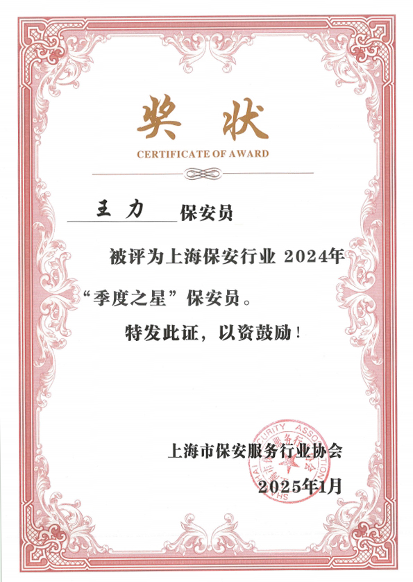 公司員工管旭峰、王力被評為“年度之星”保安員