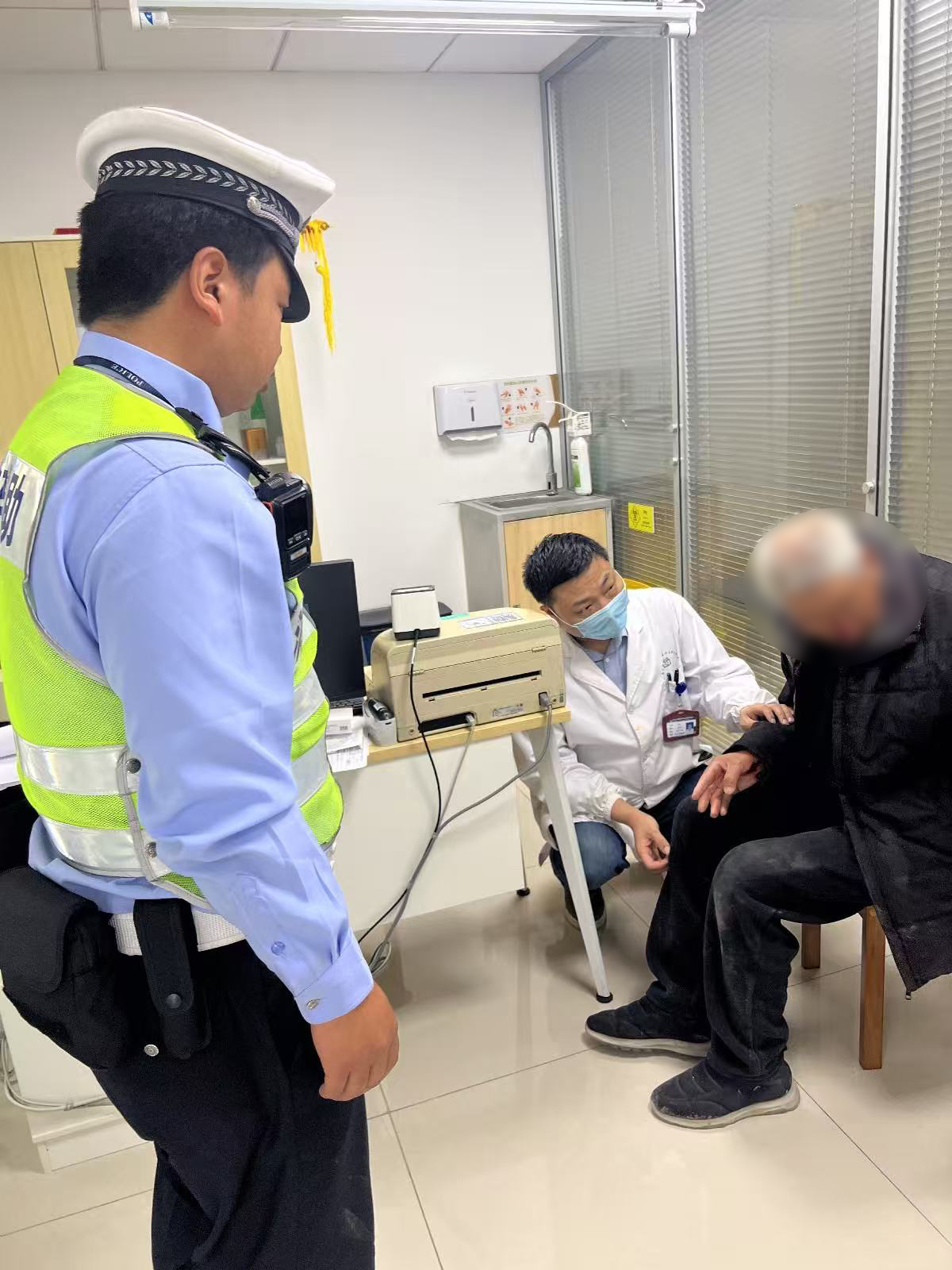 在等待過(guò)程中,老人因疼痛難忍,身體不停顫抖。考慮到情況緊急,張宇航當(dāng)機(jī)立斷,決定先行護(hù)送老人前往社區(qū)醫(yī)院救治,而馮飛則留在原地等待家屬,確保能及時(shí)對(duì)接。