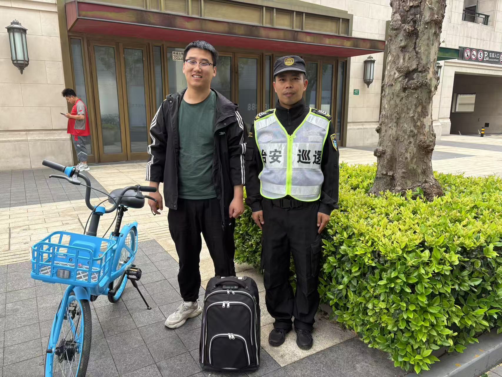 宗保公司駐浦東新區(qū)洋涇派出所輔助項(xiàng)目員工撿到行李箱歸還失主