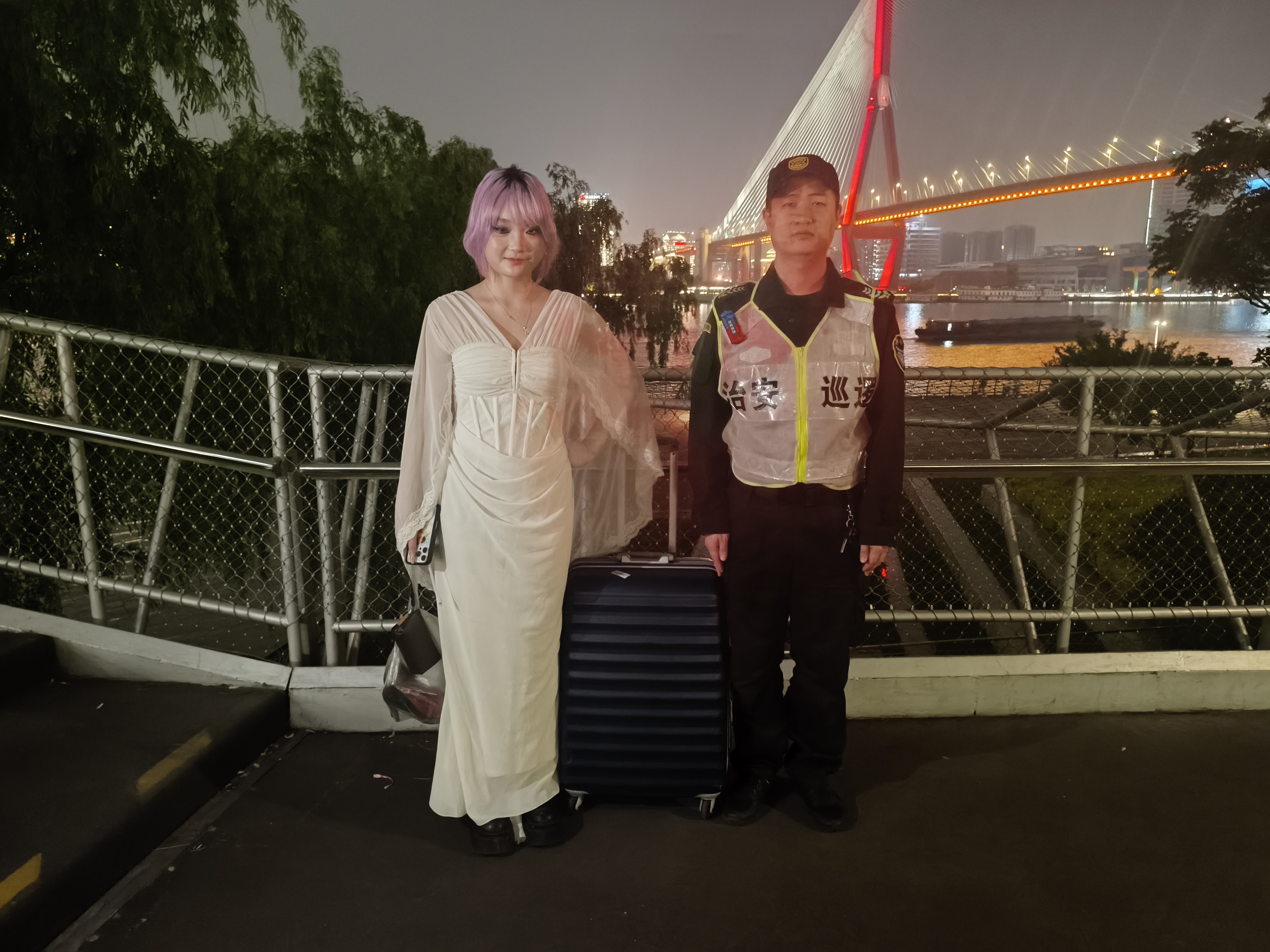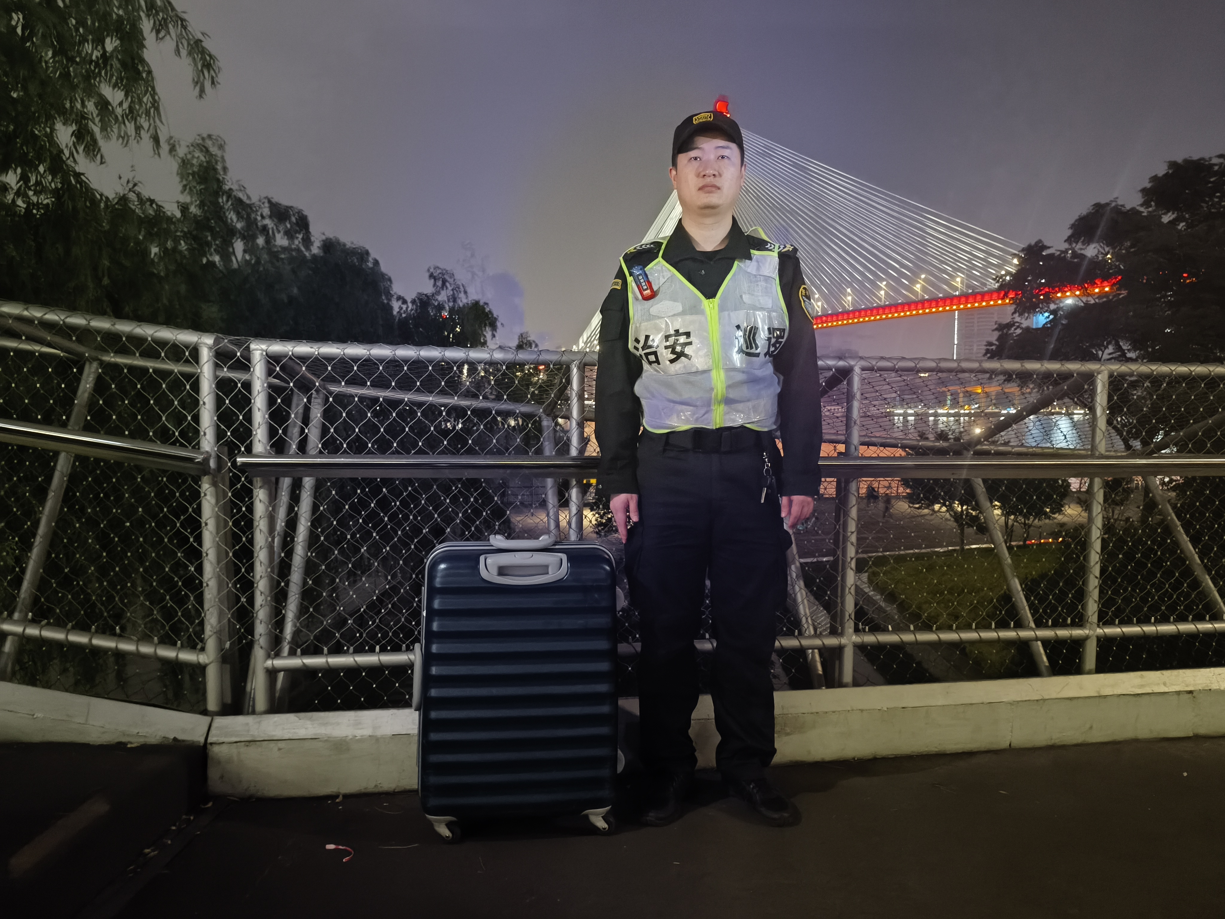 5月17日20:20,宗保公司駐浦東新區(qū)洋涇派出所輔助項(xiàng)目員工吳超和王賽巡邏至洋涇浜陸家嘴水環(huán)時(shí),撿到一個(gè)行李箱。詢問周圍路人沒人認(rèn)領(lǐng)后,吳超就將情況報(bào)告了班組長,并按指示在附近邊巡邏邊等待失主。