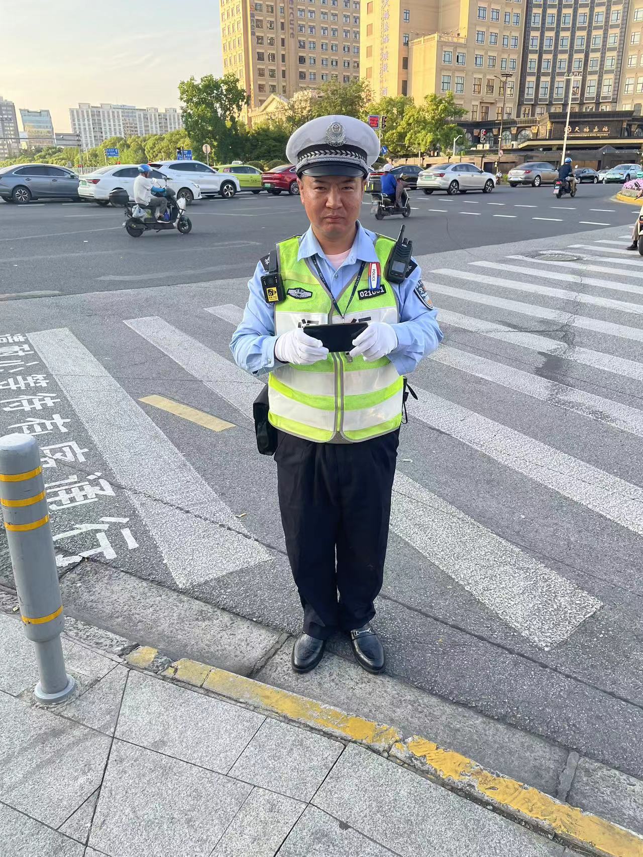 5月21日17:00,宗保公司駐閔行區(qū)虹橋交管輔助項(xiàng)目員工錢朝雷在吳中路虹許路路口執(zhí)勤時(shí),撿到一部華為手機(jī)。詢問路人無果后,錢朝雷將情況報(bào)告了帶班組長,并按指示在原地邊執(zhí)勤邊等待失主。