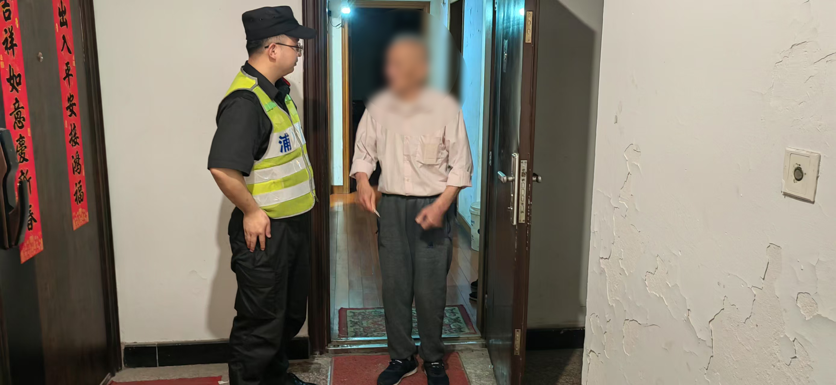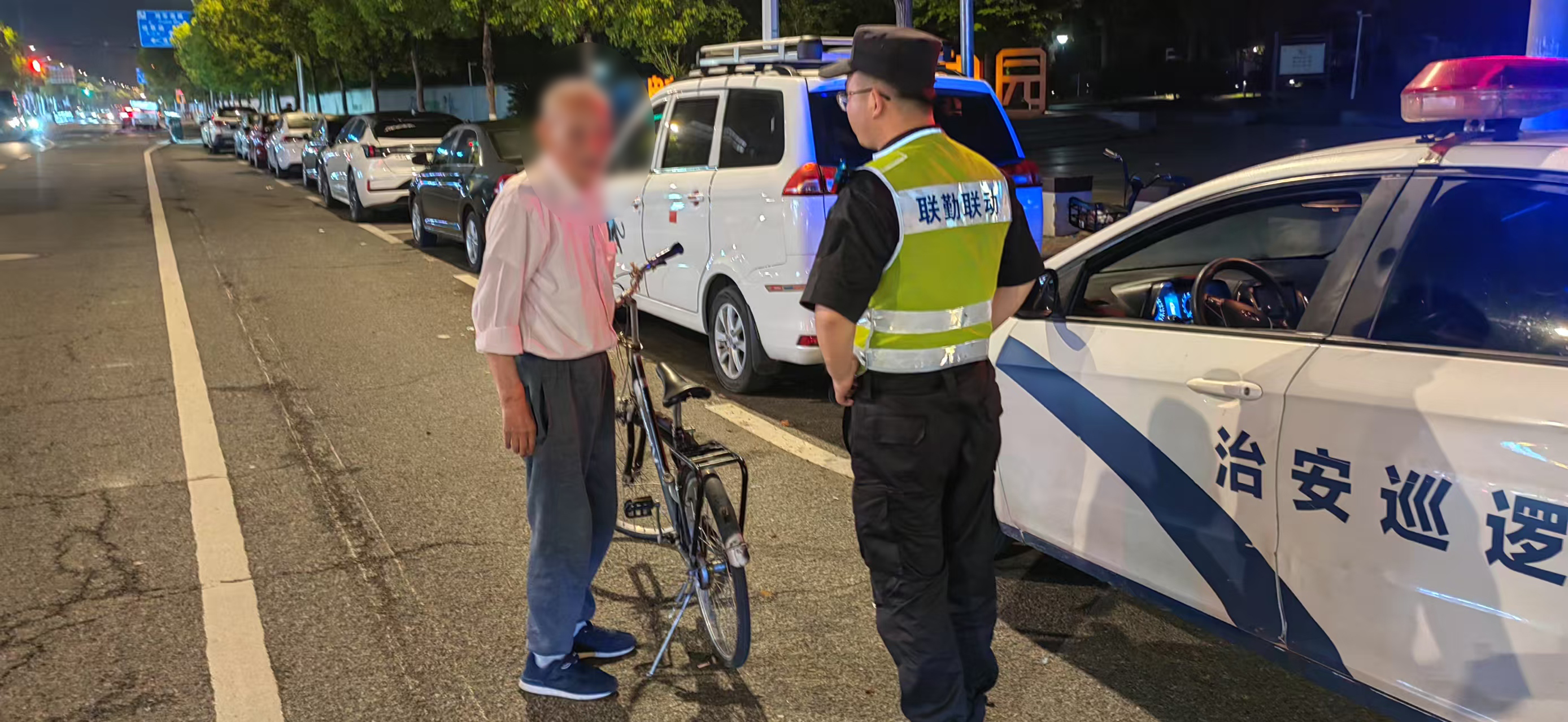 當(dāng)晚23時(shí)許,公司員工陳雷和景鵬鑫在沈梅東路哈鄰里附近執(zhí)行巡邏任務(wù)時(shí),遇到一位頭發(fā)花白老人的求助。老人表示自己迷路了,找不到回家的路,但其言語(yǔ)表達(dá)不清,也無(wú)法提供家庭地址和家人的聯(lián)系方式。