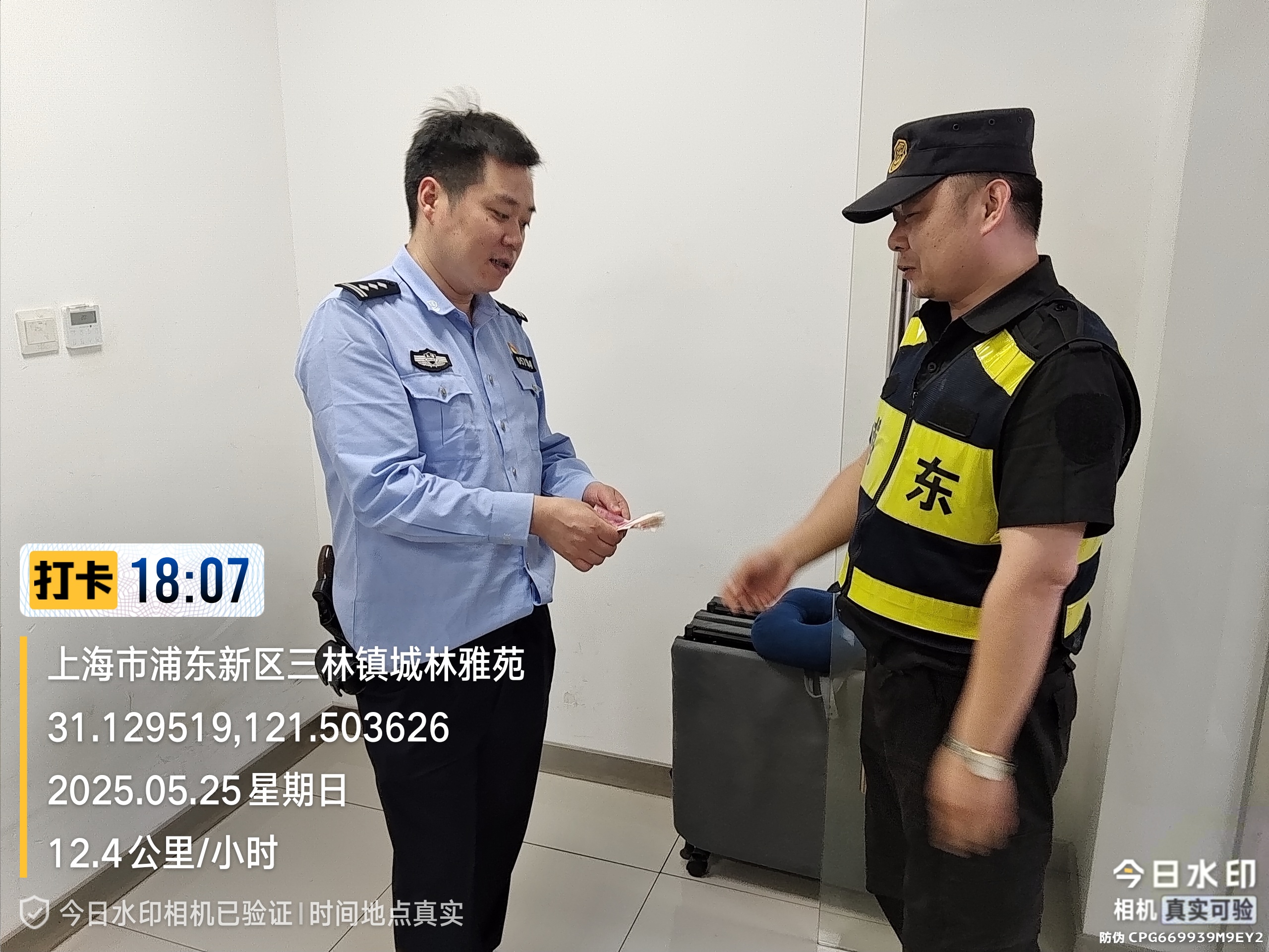 5月25日18時(shí)左右,宗保公司駐浦東新區(qū)依水園派出所輔助項(xiàng)目員工李其洋在跟隨派出所民警出警途中,撿到1000元現(xiàn)金。