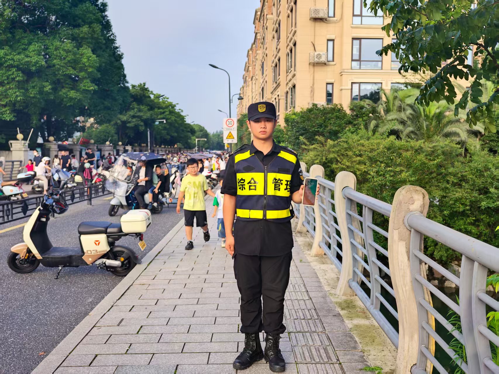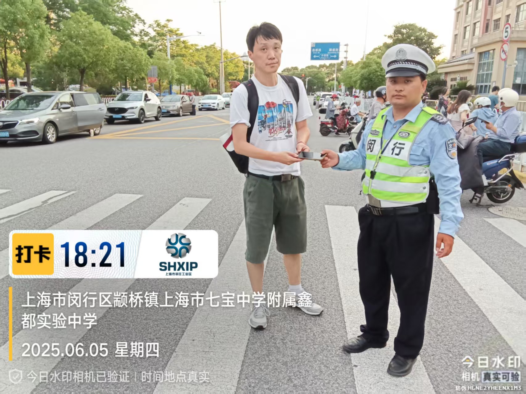 6月5日18:00 ,宗保公司駐閔行區(qū)莘莊工業(yè)區(qū)項(xiàng)目員工龍彪在鑫都實(shí)驗(yàn)中學(xué)護(hù)校時(shí),撿到一部華為手機(jī),詢問路人無人認(rèn)領(lǐng)后,便在學(xué)校門口邊執(zhí)勤邊等待失主。