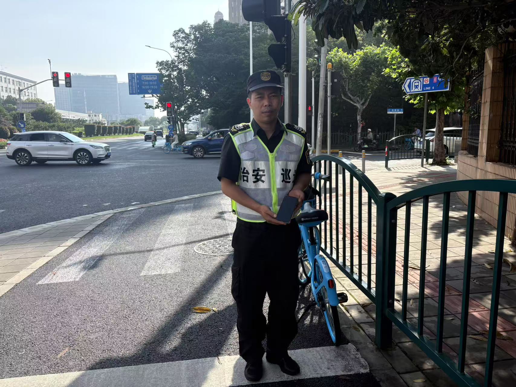 6月12日17:40,浙江民泰公司駐杭州市余杭區(qū)五常街道市容項(xiàng)目員工李天浩和牟倫申在五常街道荊長路與天竺路交叉口執(zhí)勤時(shí),撿到一部VIVO手機(jī),隨即報(bào)告了帶班組長,并在原地邊執(zhí)勤邊等待失主。