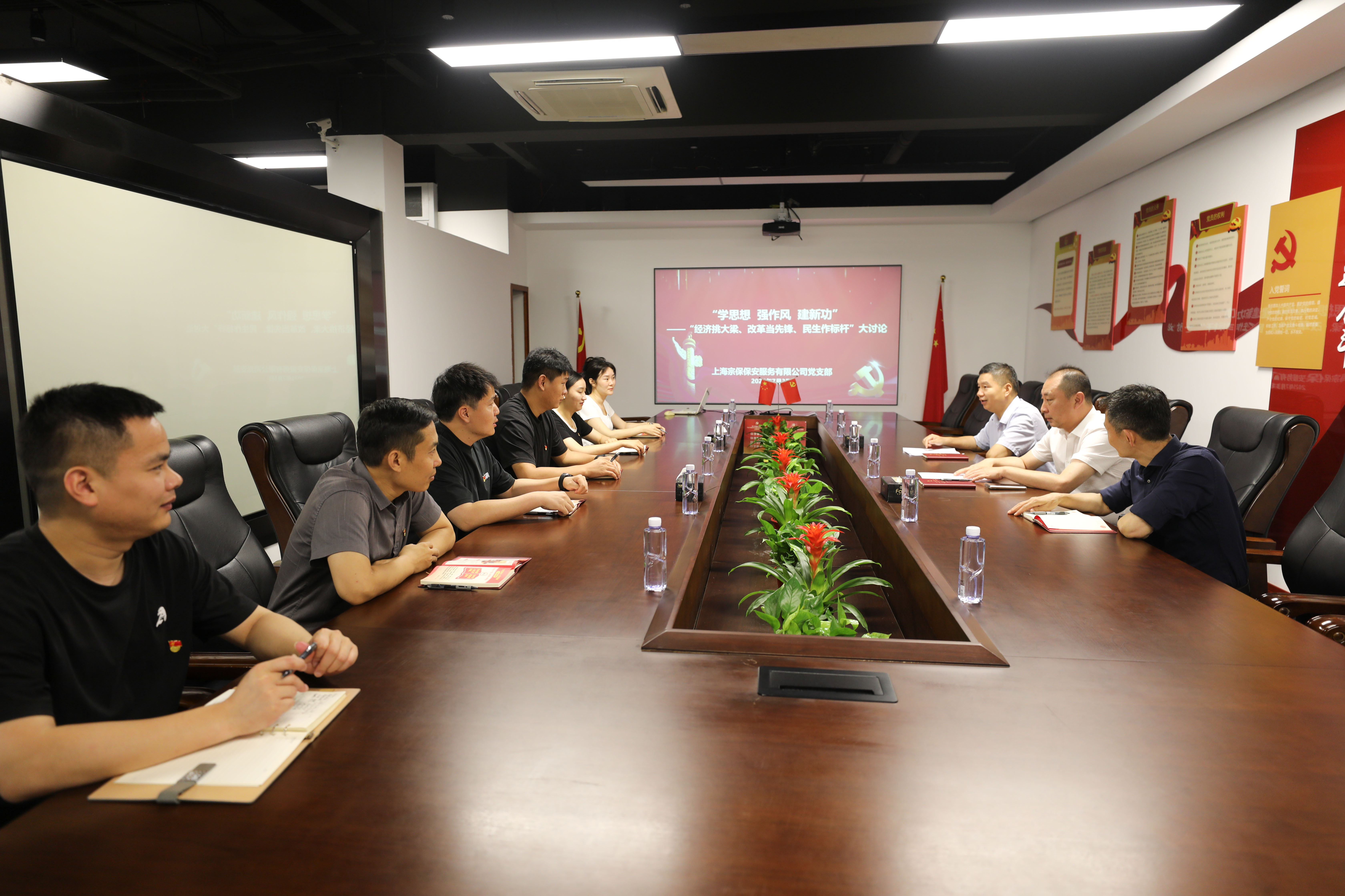 隨后,楊璞書記傳達浦東新區(qū)周浦鎮(zhèn)社會工作辦關(guān)于開展“學思想 強作風 建新功”專題教育通知精神,并以“經(jīng)濟挑大梁、改革當先鋒、民生作標桿”為主題,圍繞公司員工如何立足保安服務(wù)主責主業(yè),在服務(wù)好客戶、保障安全中貢獻力量;如何在內(nèi)部管理、服務(wù)模式上勇于改革創(chuàng)新開展大討論。