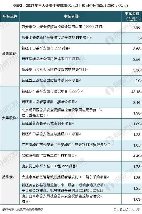 重點(diǎn)企業(yè)中標(biāo)平安城市億元以上項(xiàng)目分析:PPP項(xiàng)目興起,大華股份中標(biāo)金額最高