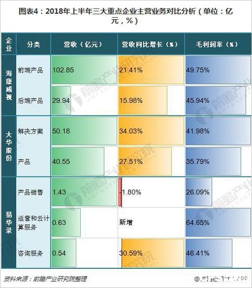 三大重點(diǎn)企業(yè)主營(yíng)業(yè)務(wù)經(jīng)營(yíng)情況對(duì)比:前端產(chǎn)品增長(zhǎng)較快,從賣產(chǎn)品到賣解決方案