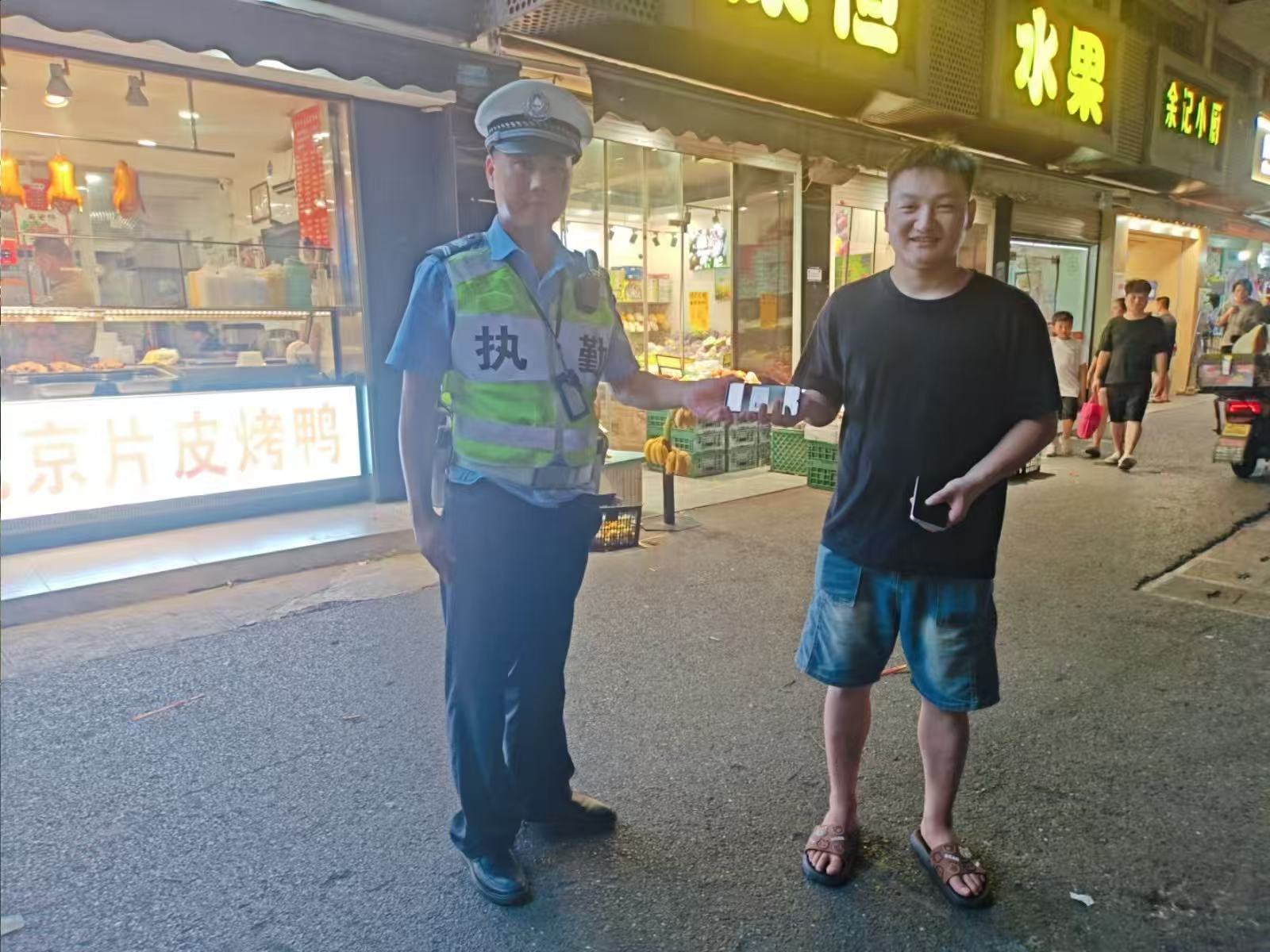 很快,男子趕到約定地點(diǎn)。戎榮軍確認(rèn)男子是失主后,便將手機(jī)歸還給了他。男子拿著手機(jī),連連稱贊戎榮軍拾金不昧的行為。