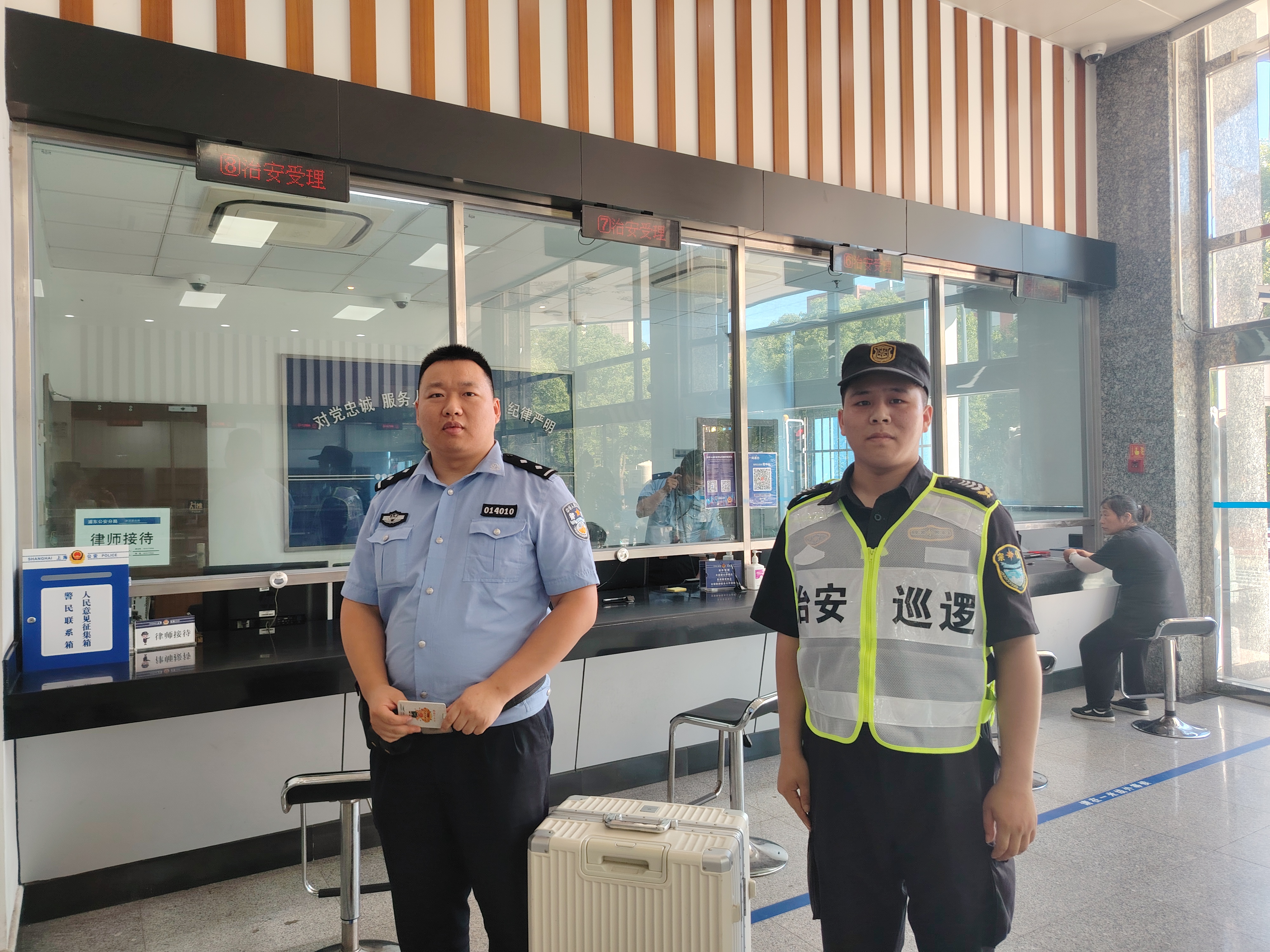 兩個(gè)人等了約十幾分鐘仍未見失主前來認(rèn)領(lǐng),便將行李箱和其中物品一并上交到洋涇派出所值班室,由民警幫尋失主。