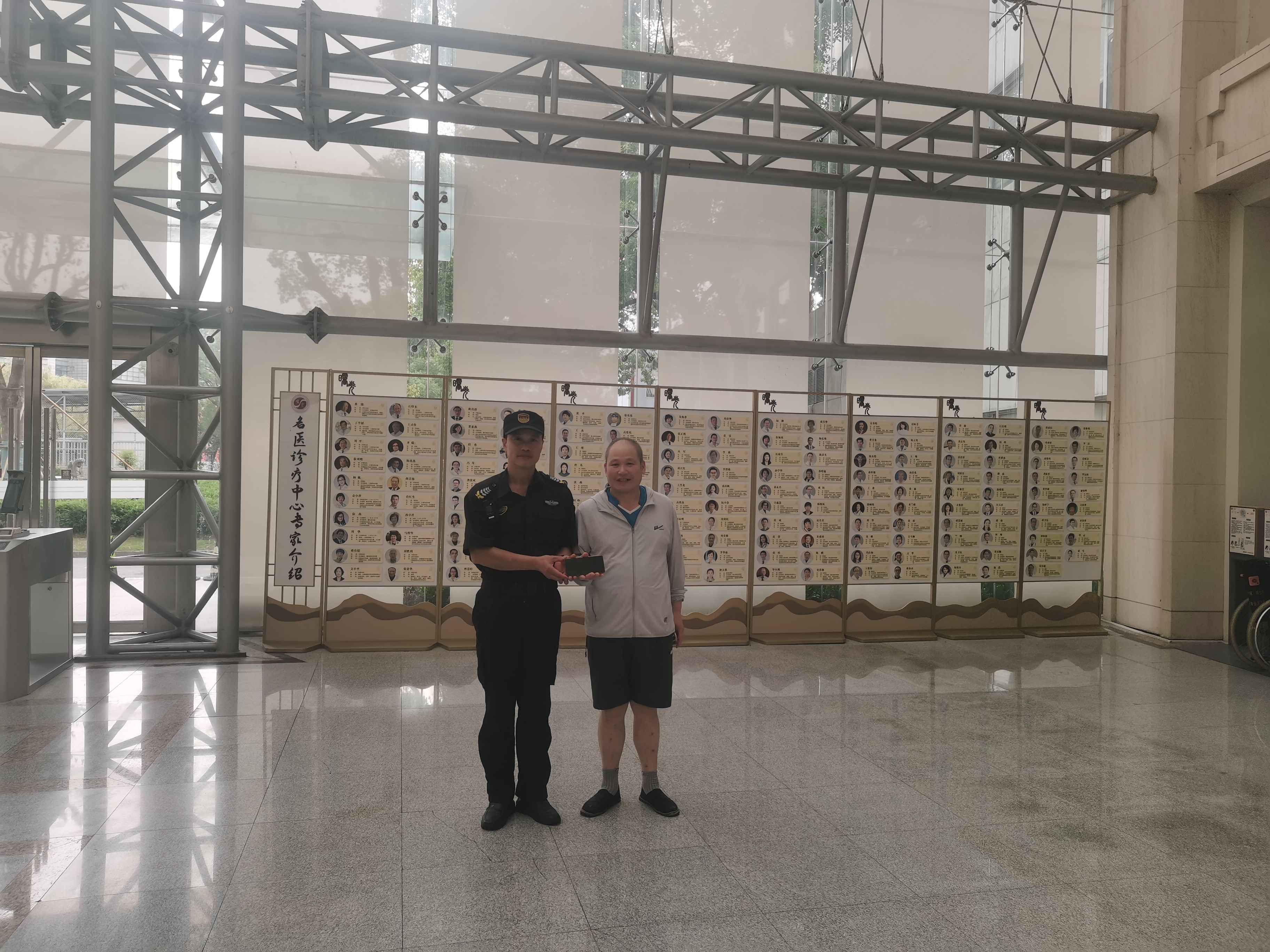 7月16日16:20,宗保公司駐浦東新區(qū)曙光醫(yī)院東院項(xiàng)目員工戎榮軍在張衡路1號(hào)門巡邏時(shí),撿到一部Vivo手機(jī),報(bào)告班組長(zhǎng)后,便在原地邊巡邏邊等待失主。