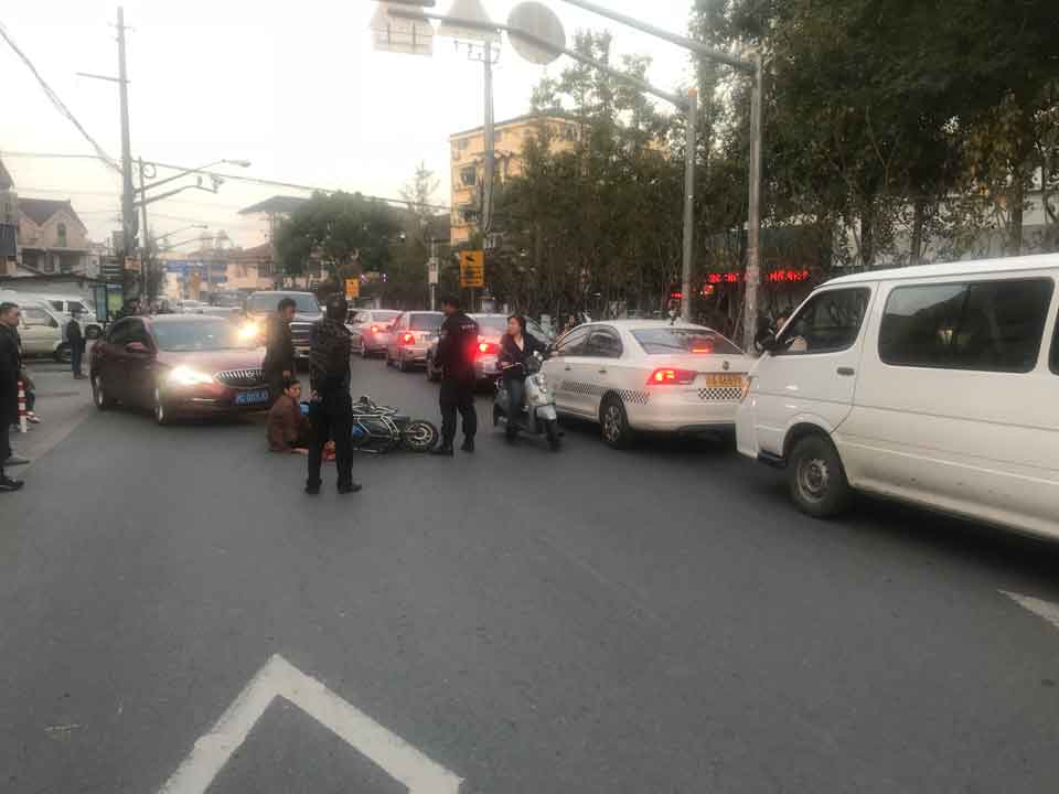 當(dāng)天下午16:00左右,黃路社區(qū)隊員秦泗彬、湯紅強、朱清科、劉偉、陶永錦等在上班巡邏期間,發(fā)現(xiàn)在川南奉公路振興路路口10米處發(fā)生一起轎車與電瓶刮撞事故,該事故造成道路封堵。正是下班高峰期,五名隊員立馬下車幫助當(dāng)事人報警,并勸導(dǎo)兩名當(dāng)事人拍好照片,取好證,讓當(dāng)事人車輛停靠路邊。接下來,五名隊員指引擁堵車輛有序通行,使交通慢慢恢復(fù)暢通。