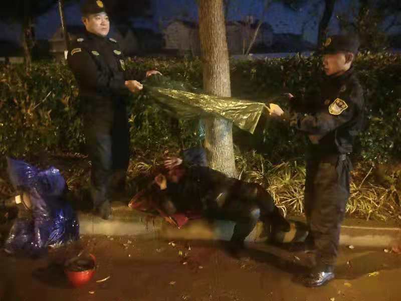 當天下午17:00左右,王飛,劉兵,周支鴻,張亮亮,馬勇飛等隊員在下班途中,經南團公路到達東四灶港橋附近時,發(fā)現(xiàn)路邊綠化帶上一行人連同電瓶車倒在地上。隊員們立即停車下去查看,發(fā)現(xiàn)是一位老太太,因雨天路滑騎車摔倒在地上。當時其嘴部鮮血較多,語言表達不清。根據(jù)當時情況,隊員第一時間撥打了110和120急救電話,然后上前與老人一番溝通,最終通過老人的手機與其家人取得了聯(lián)系。在等待救援和家人的過程中,老人躺在地上哭泣。因天氣一直下著小雨,隊員拿來雨衣?lián)卧诶先松砩蠟槠鋼跤辏刈o在老人身邊,直至警察、急救人員、家屬到現(xiàn)場后,合力將老人送到救護車上。