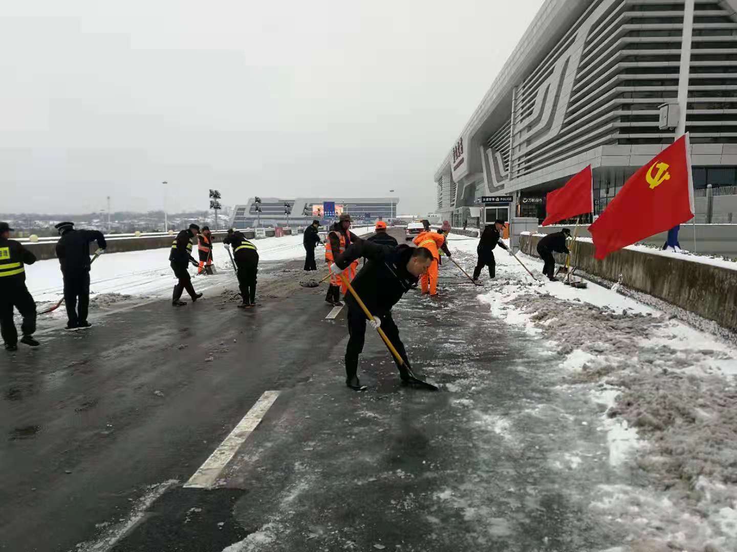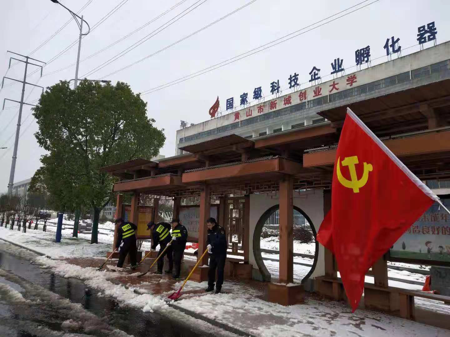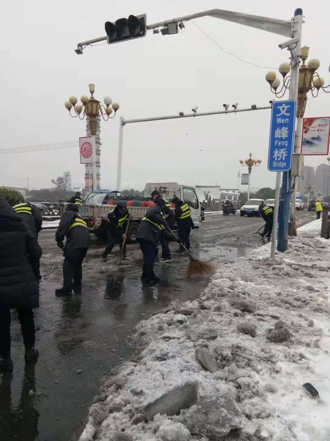2018年11月8日晚,黃山突降大雪,嚴(yán)寒天氣,道路覆冰,交通受阻,給人們的生活和工作帶來了嚴(yán)重影響。為了積極應(yīng)對(duì)冰雪天氣出行平安,11月9日晨曦初露,宗保駐黃山各區(qū)縣市容項(xiàng)目隊(duì)員紛紛帶好鐵鍬、掃帚等工具,積極配合政府加入到鏟冰除雪的行動(dòng)中。經(jīng)過大家一個(gè)上午的奮戰(zhàn),道路上的冰雪被鏟至路邊,為交通出行掃除了障礙。