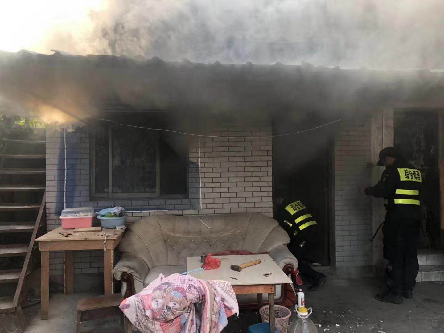 當(dāng)天下午14:31分,當(dāng)陳超正在進(jìn)行日常巡邏時。當(dāng)巡邏至石鴿里163號附近時,隱約看見有亮光,憑著職業(yè)的敏感性,立即向發(fā)光處靠近。原來是163號居民房間里著火了,火勢蔓延迅速,如果不及時撲滅,后果不堪設(shè)想。陳超立即將該情況報(bào)告隊(duì)長,并請求支援。不到5分鐘,隊(duì)長及隊(duì)友拿著滅火器材來了,并通知綜治科領(lǐng)導(dǎo)李賢海、李國華到現(xiàn)場。陳超告知居民家中無人應(yīng)答,情況緊急,隊(duì)長下令把門鎖撬開,先救火。隊(duì)員有的拿滅火器;有的從旁邊打水投入到滅火行動中。經(jīng)過隊(duì)員和城管隊(duì)員大家共同的努力,火勢終于有所控制,并被撲滅。