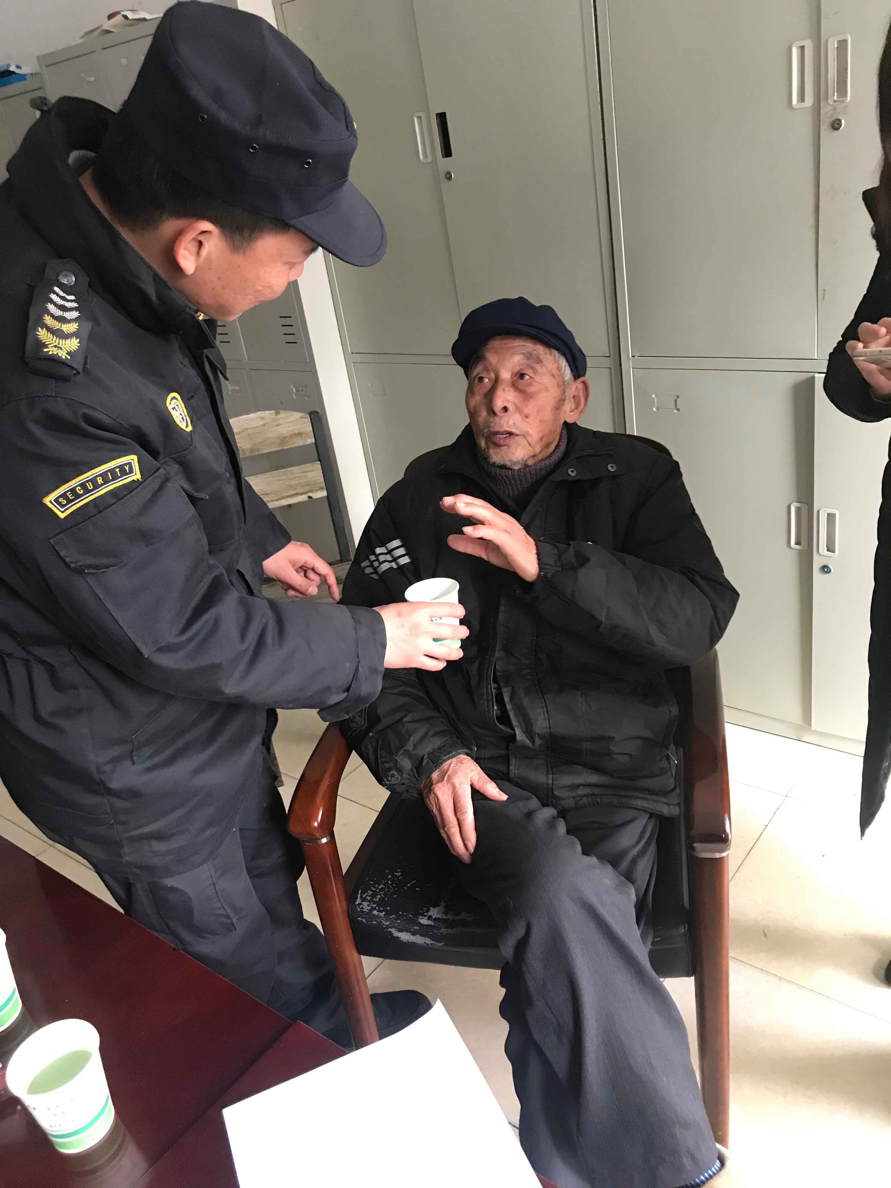 “謝謝你們這些好心人,否則我不知道怎么辦呀!”迷路老人張大爺激動萬分,向宗保隊員表示感謝。
