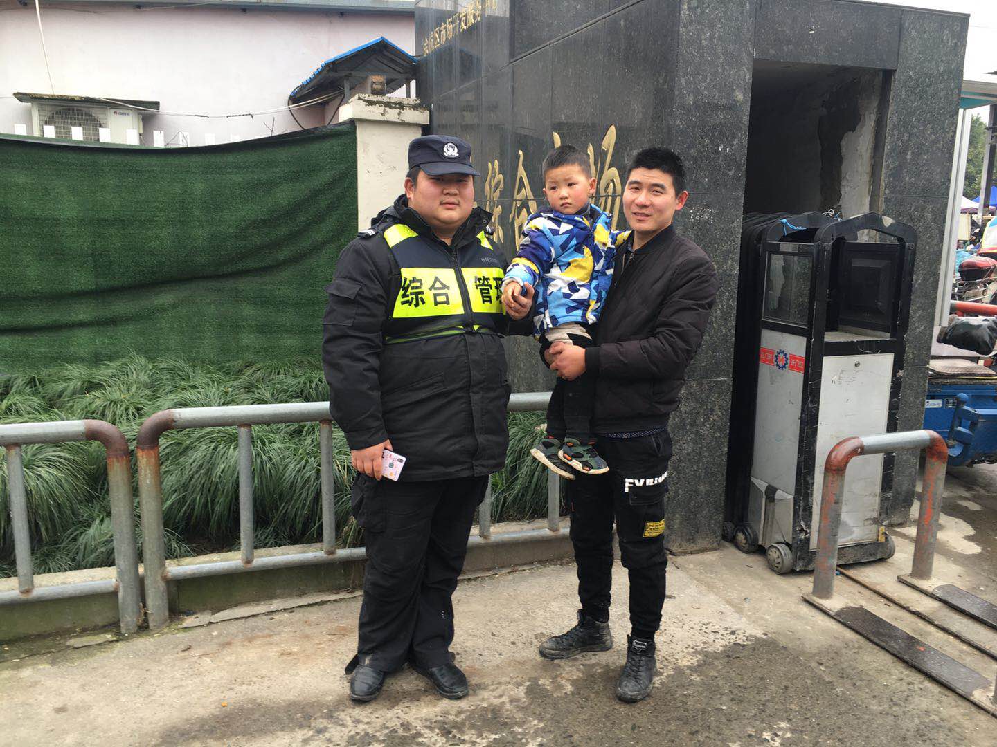 2019年1月13日,浙江民泰駐余杭開(kāi)發(fā)區(qū)市容項(xiàng)目隊(duì)員將一位與家長(zhǎng)走散的小孩安全送到父母手中。