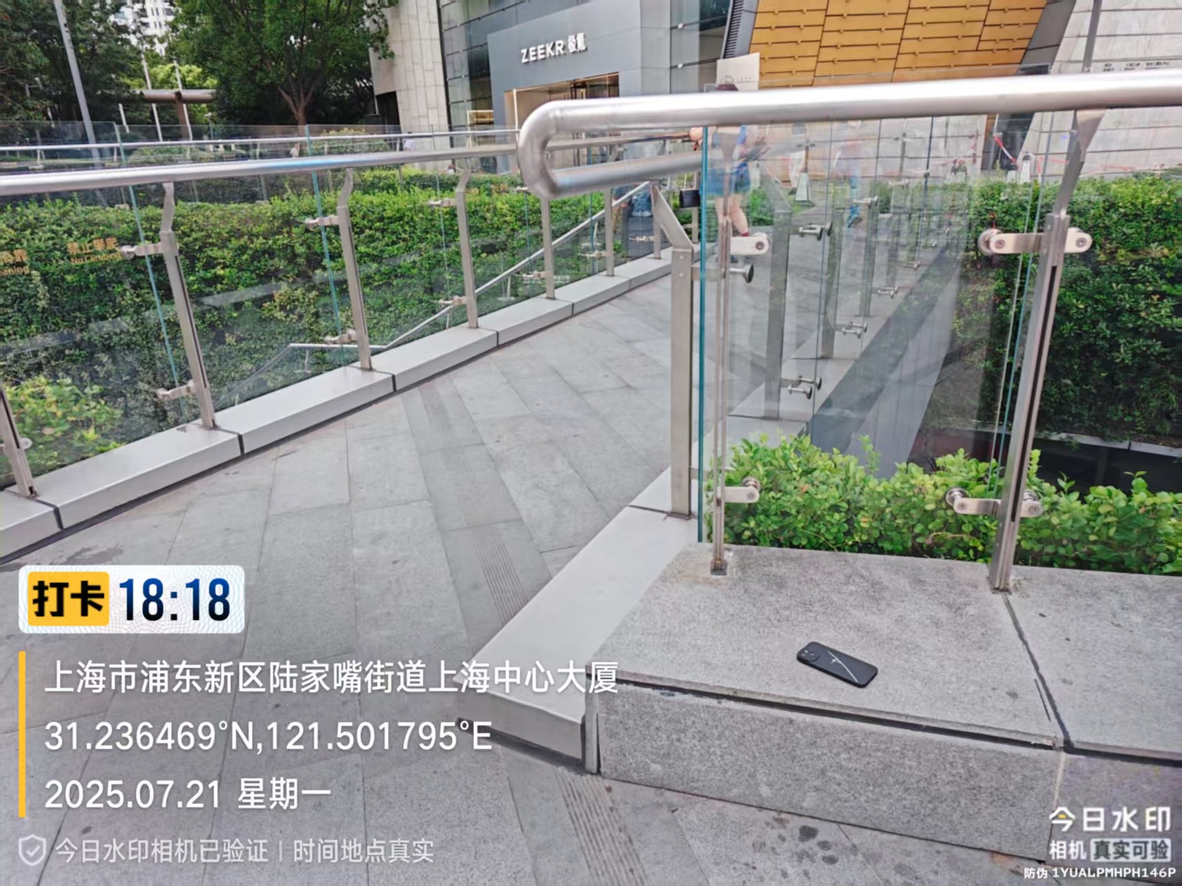 7月21日18:18,宗保公司駐浦東新區(qū)陸家嘴綜合管理項目員工任藝珂在金茂大廈黑攝影附近巡邏時,撿到一部蘋果手機。考慮到失主丟了手機可能會返回尋找,便決定在原地邊巡邏邊等待失主。