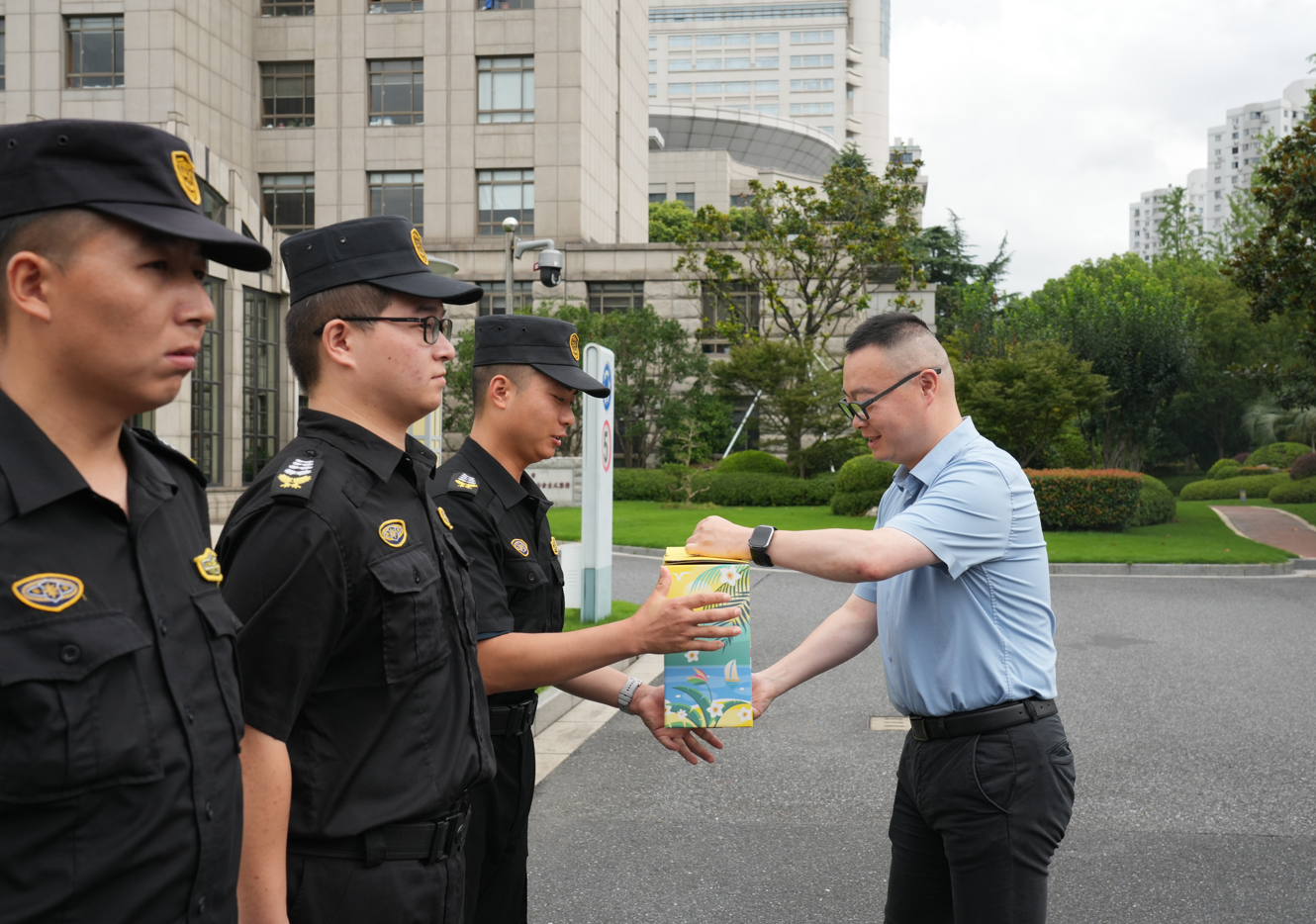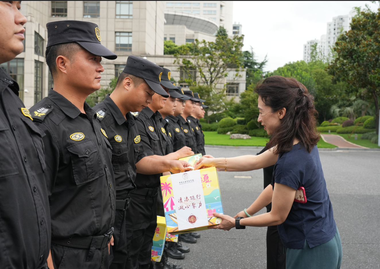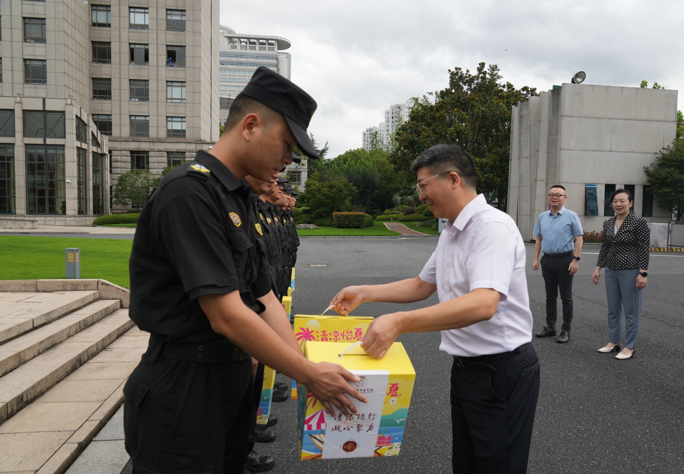 7月29日,上海市委黨校副校長戴冰一行,頂著炎炎烈日,看望慰問高溫下堅守崗位的宗保公司員工,為他們送上防暑降溫用品,表達市委黨校對安保人員的關(guān)心和問候,感謝大家為維護黨校秩序所付出的辛勤勞動,叮囑大家安排好休息,照顧好身體。