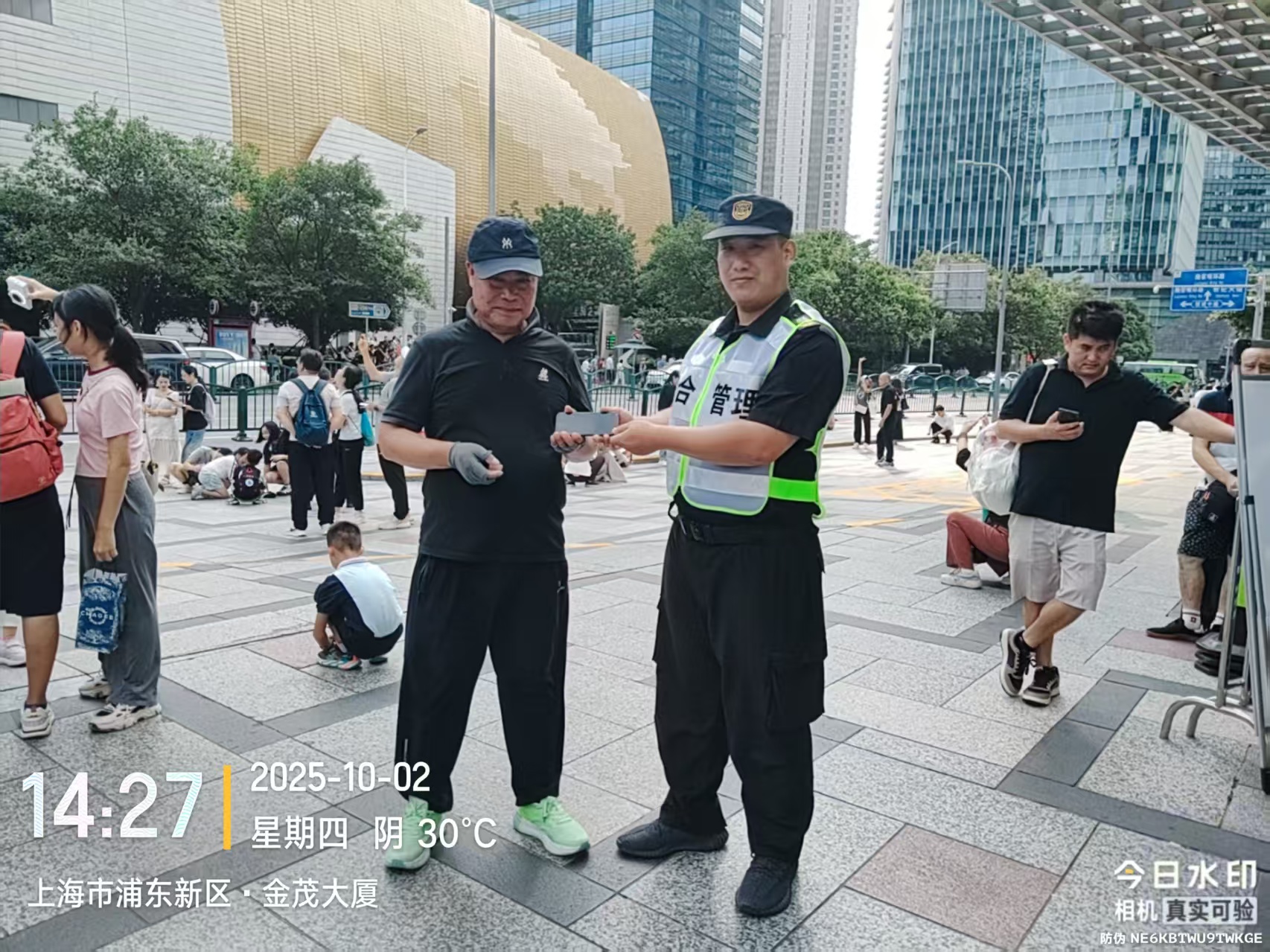 宗保公司駐浦東新區(qū)南碼頭市容項(xiàng)目員工桑飛撿到現(xiàn)金等物品歸還失主