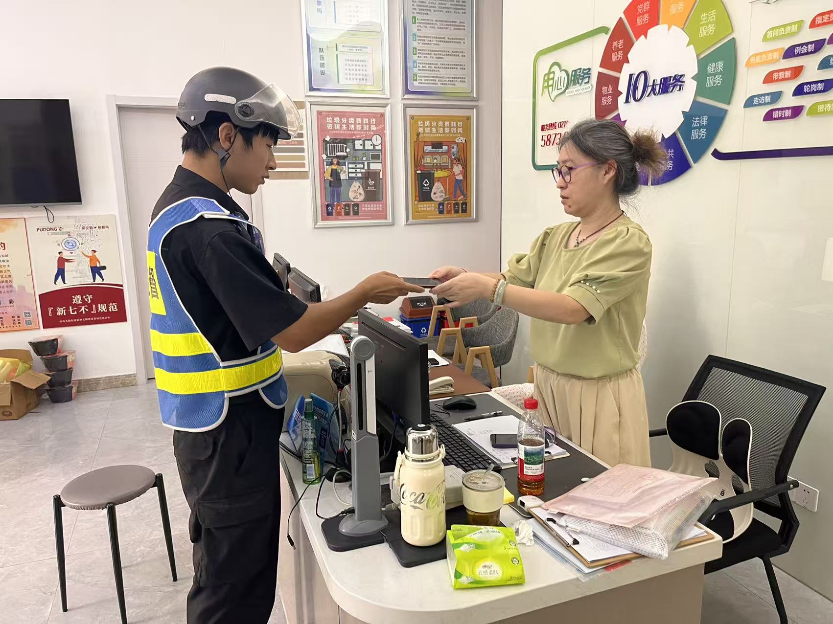 因后續(xù)有工作安排,劉帥旗主動(dòng)將手機(jī)轉(zhuǎn)交給龍馥居委會(huì)工作人員,委托其幫忙尋找聯(lián)系失主。隨后,劉帥旗便立即返回工作崗位,繼續(xù)開(kāi)展值勤巡查工作。