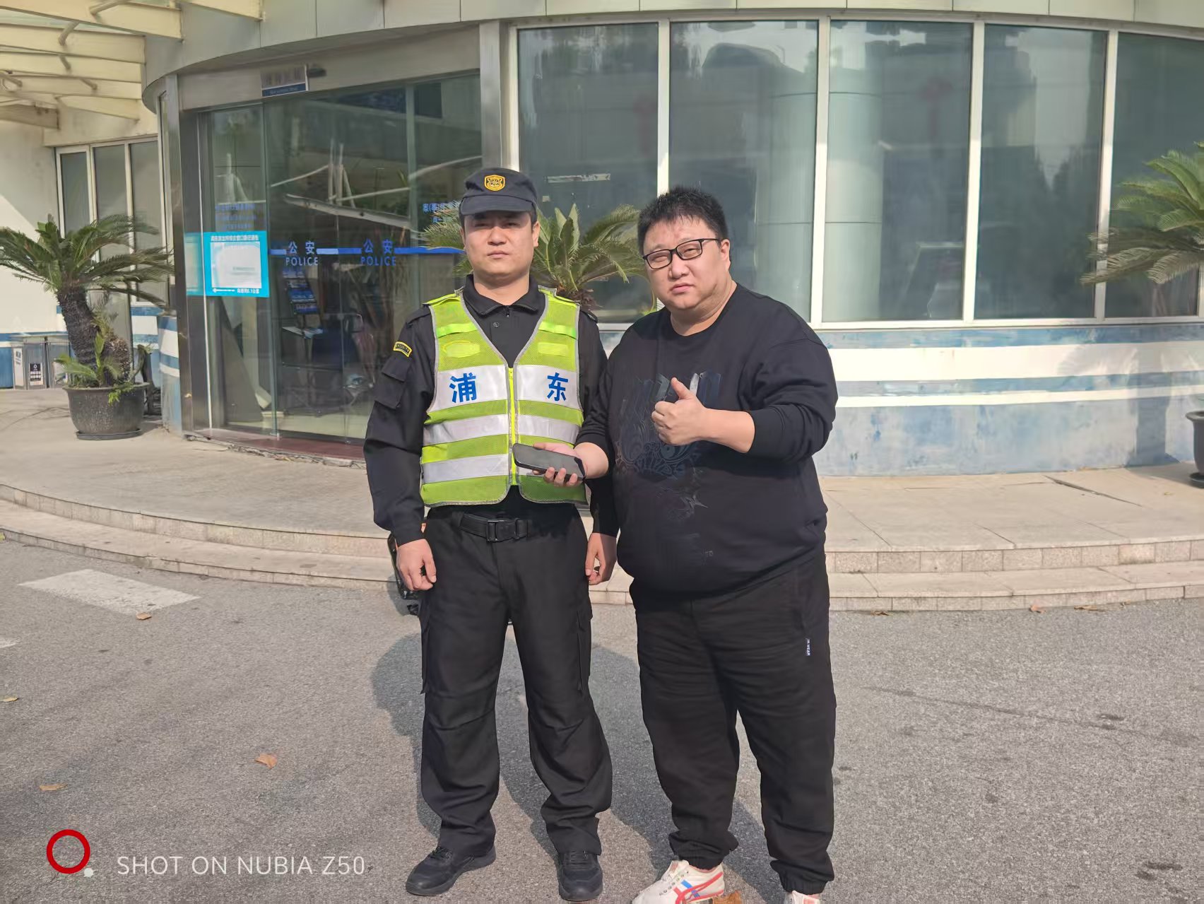 宗保公司駐浦東新區(qū)周東派出所輔助項(xiàng)目員工張飛虎撿到蘋(píng)果手機(jī)歸還失主