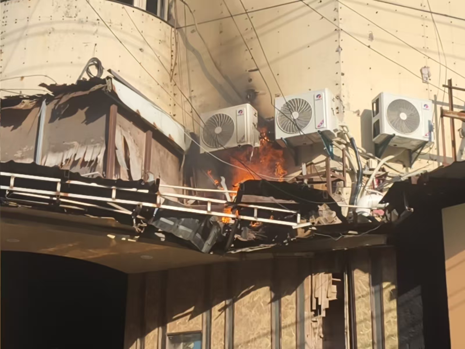 當(dāng)天14:38,公司員工李兵在慈善街附近巡查時,突然發(fā)現(xiàn)臨街一棟居民樓二樓外墻空調(diào)外機處冒出濃煙并伴有明火,隨即將情況報告了項目負(fù)責(zé)人王如龍。