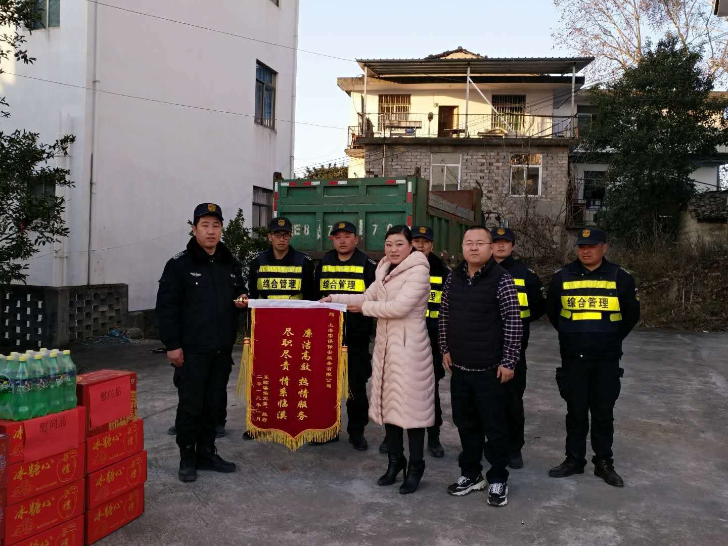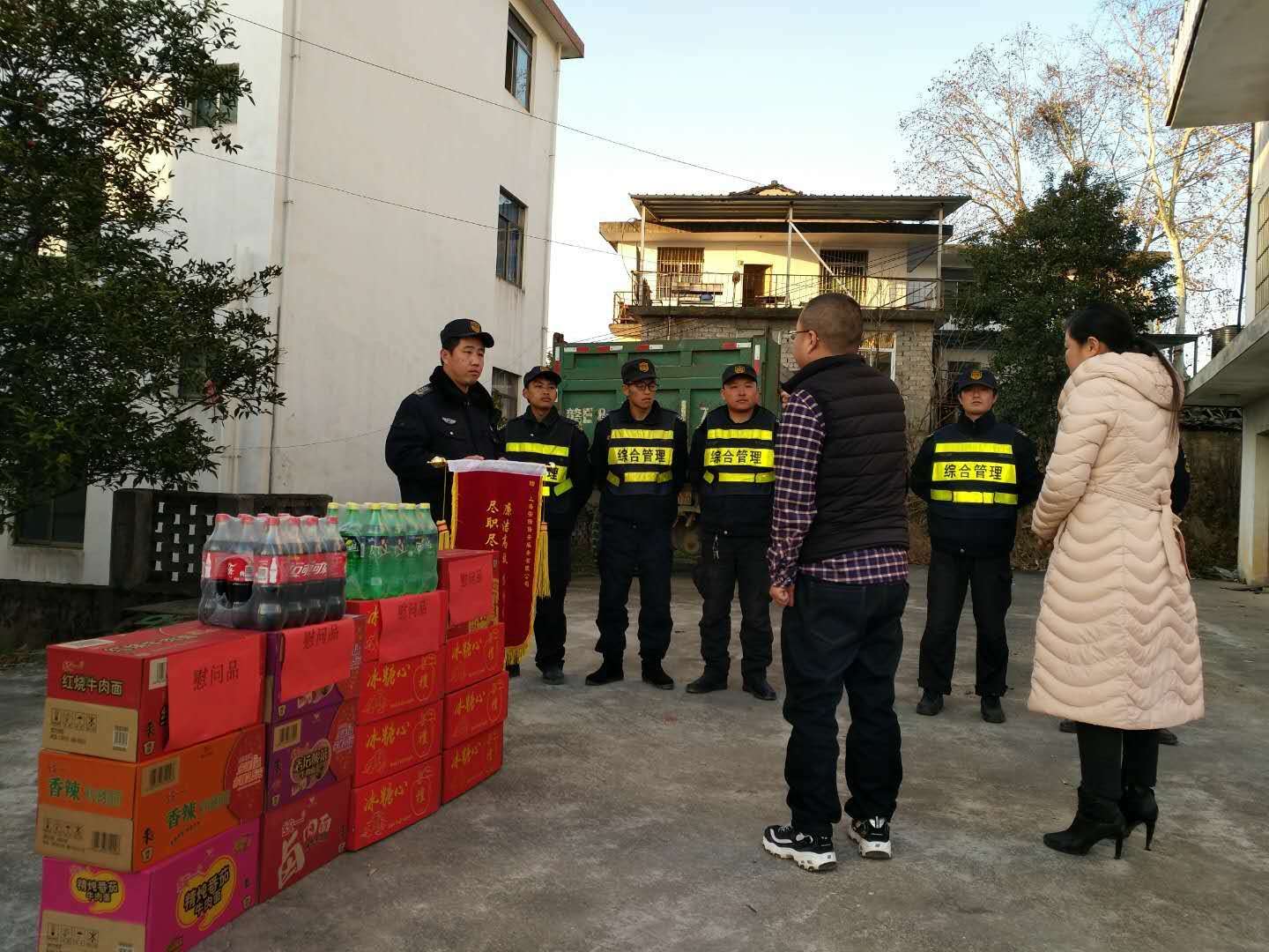 2019年1月30日,黃山市黃山區(qū)城市管理行政執(zhí)法局陳局長(zhǎng)代表城管局,對(duì)宗保隊(duì)員進(jìn)行慰問(wèn),同時(shí)贈(zèng)送錦旗,充分肯定宗保公司工作