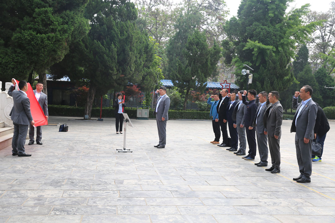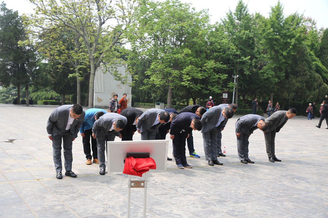 白玉石碑,巍然聳立;蒼松翠柏,莊嚴(yán)肅穆。在焦裕祿烈士陵園前,全體同志懷著無比崇敬的心情向焦裕祿烈士敬獻(xiàn)花籃并鞠躬致敬,并重溫入黨誓詞。
