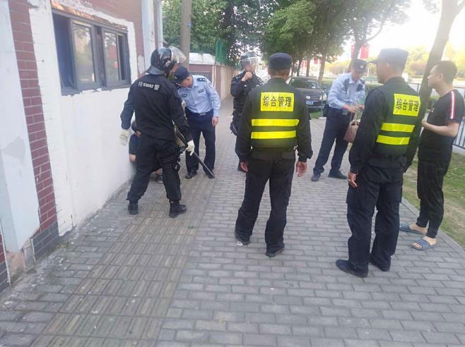 當(dāng)日17:30左右,在高青路聯(lián)豐菜市場(chǎng)旁邊雜貨鋪,有位50多歲老太精神恍惚,向店鋪老板買刀過程中揚(yáng)言要?dú)⑷恕5昀习甯械绞虑椴幻睿∏膳龅阶诒9娟?duì)員張治付巡邏到附近,立即將該情況告知小張。小張得知此信息后,迅速上報(bào)帶班組長(zhǎng)并報(bào)警,班組長(zhǎng)接到報(bào)備迅速上報(bào)三林項(xiàng)目負(fù)責(zé)人。當(dāng)時(shí)情況緊急,正是下班高峰期,加上菜場(chǎng)人流大,兩名特警與兩名民警加上三名宗保隊(duì)員,大約十分鐘左右在人群中鎖定了老太,將其驅(qū)趕偏僻人少的地方,控制住拿下兇器。