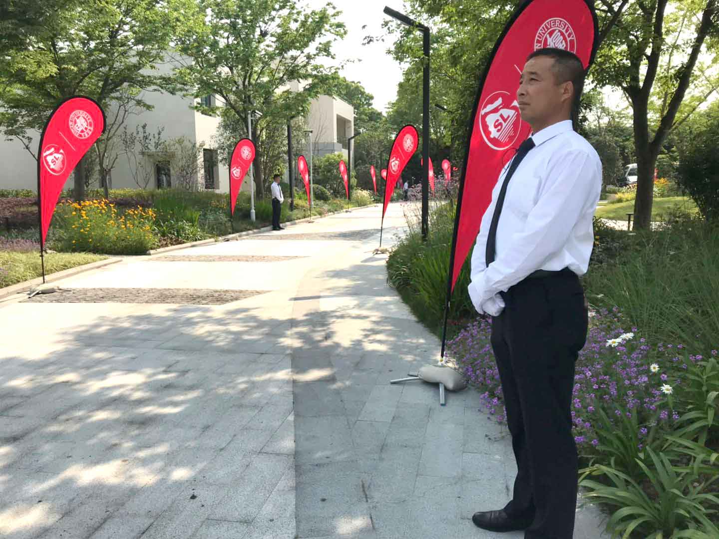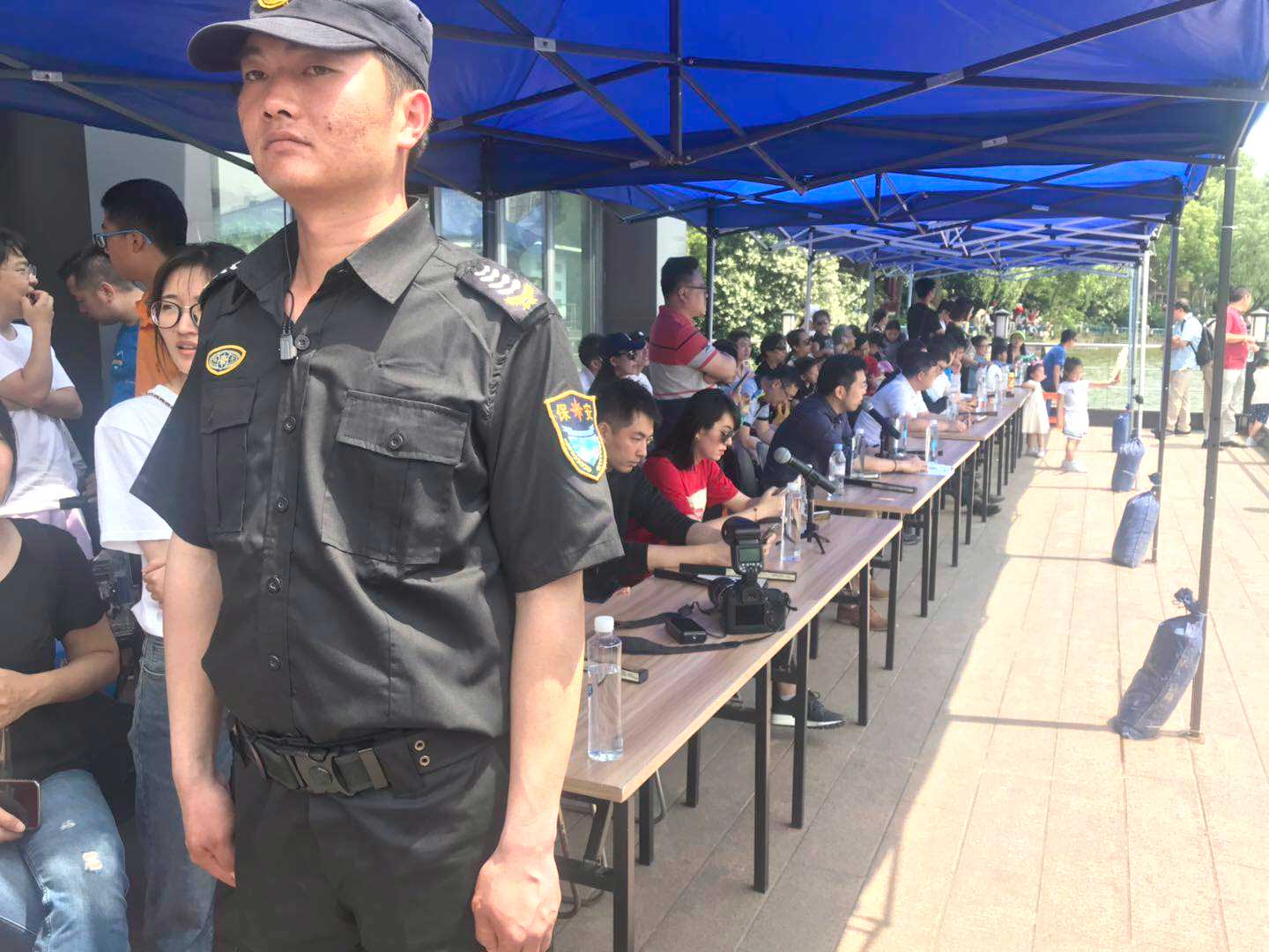 當(dāng)日天氣炎熱,即使在火辣辣的太陽照射下,隊(duì)員們始終保持良好的精神狀態(tài),克服高溫困難,秉承公司“上崗提供服務(wù),微笑增添力量”的宗旨。用實(shí)際行動(dòng)證明了宗保公司是一支紀(jì)律嚴(yán)明,保障有力的隊(duì)伍。全體特保堅(jiān)守好各自崗位,各司其職,積極做好前臺(tái)接待、秩序維護(hù)和車輛停放秩序管理等安保工作,確保了活動(dòng)安全有序進(jìn)行。此次活動(dòng)圓滿完成,參戰(zhàn)隊(duì)員受到了甲方的肯定和贊揚(yáng),為宗保公司良好的品牌形象加分、點(diǎn)贊。