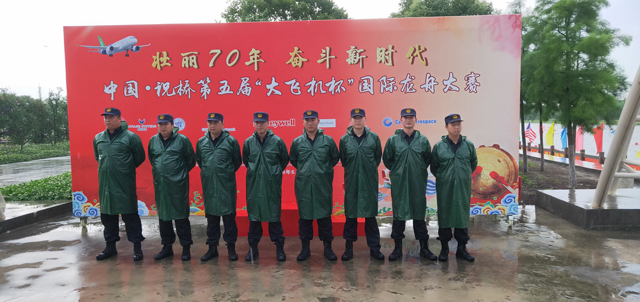 (供稿人:王占偉)鼓槌擂響箭離弦,振臂齊聲斬浪尖。2019年6月6日,端午佳節(jié)即將來臨之際,上海浦東祝橋鎮(zhèn)龍舟基地鼓聲隆隆、龍舟競渡、奮楫爭先——由中國商飛公司與上海市浦東新區(qū)祝橋鎮(zhèn)人民政府聯(lián)合舉辦的“壯麗70年、奮斗新時(shí)代”中國祝橋第五屆“大飛機(jī)杯”國際龍舟大賽在這里舉行,共18支隊(duì)伍參加比賽。