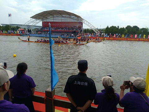 為弘揚(yáng)中華民族悠久歷史文化,豐富陸家嘴金融城白領(lǐng)業(yè)余文化生活,6月2日下午,2019年“YKK杯”第三屆陸家嘴金融城龍舟賽在上海浦東張家浜河畔開賽,來自金融城各企業(yè)及團(tuán)體的27支代表隊(duì),300余名運(yùn)動(dòng)員參加比賽。宗保公司負(fù)責(zé)賽事現(xiàn)場秩序維護(hù)任務(wù)。