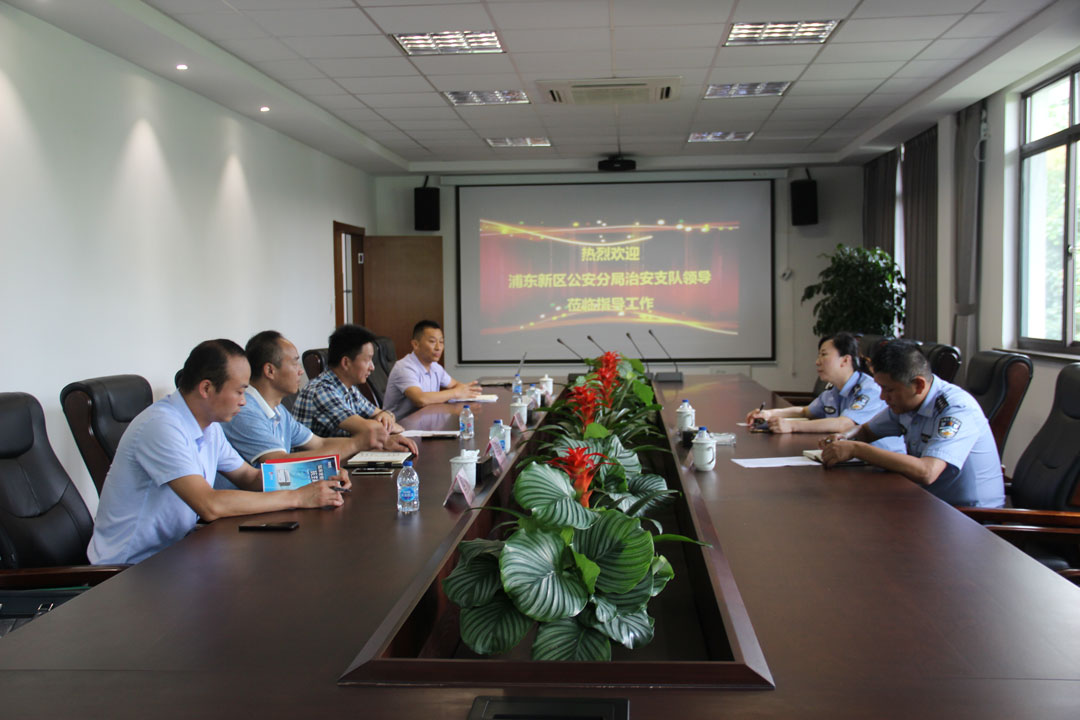 2019年7月17日上午,浦東公安分局治安支隊(duì)張翼副支隊(duì)長(zhǎng)、保安管理科馬杰科長(zhǎng)蒞臨公司,調(diào)研指導(dǎo)公司保安隊(duì)員教育培訓(xùn)工作,馮中保董事長(zhǎng)全程陪同。