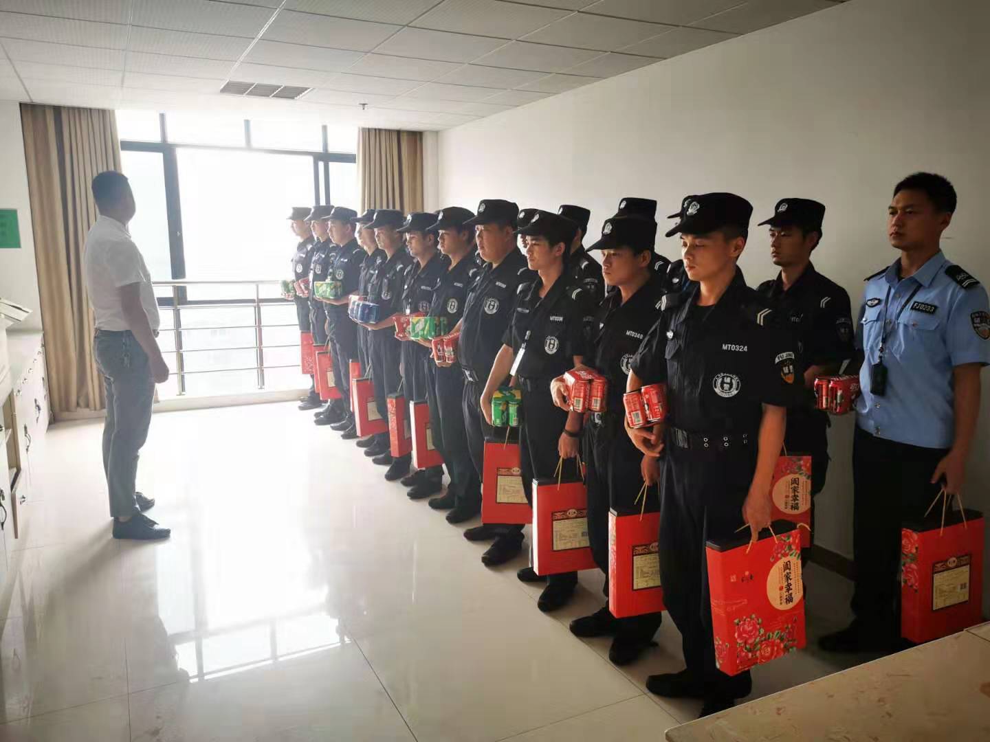 9月12日,余杭東西片區(qū)域經(jīng)理朱曉遠(yuǎn)、張耒林代表馮董事長(zhǎng)和公司領(lǐng)導(dǎo)給杭州區(qū)域一線員工送去祝福和慰問。不僅把溫暖和關(guān)懷送到了一線,同時(shí)也對(duì)當(dāng)前大慶安保提出要求。全體員工倍受感動(dòng),紛紛表示將以高昂的斗志、飽滿的熱情、積極投身于今后的工作,確保每項(xiàng)工作都能夠高標(biāo)準(zhǔn)完成。