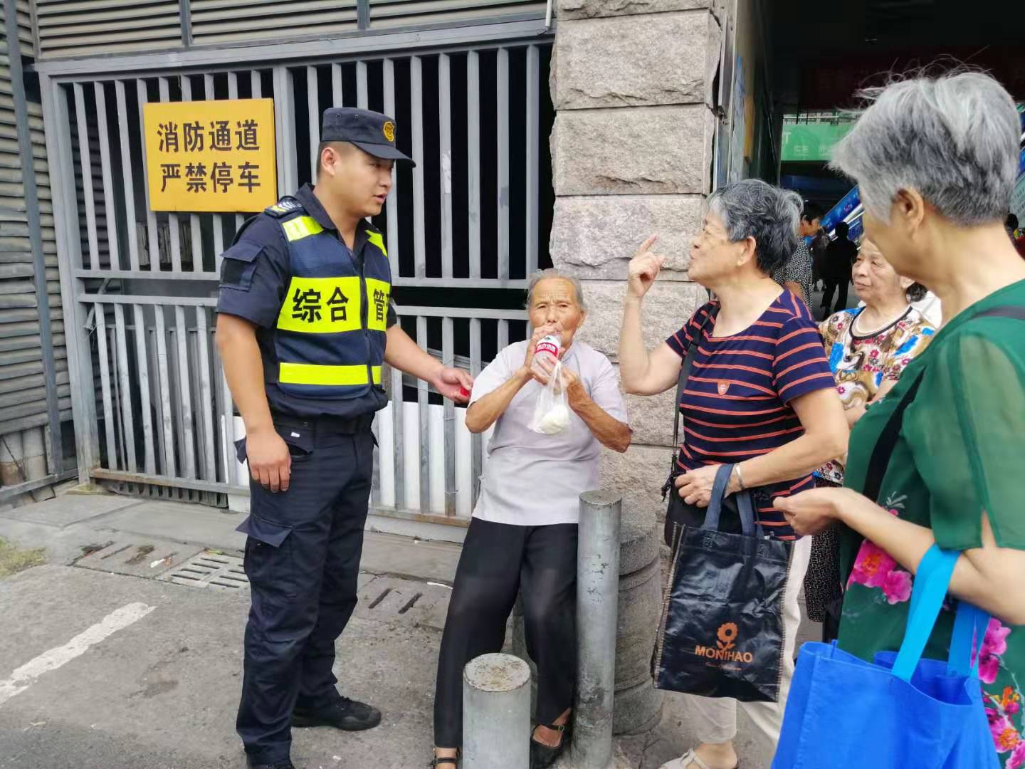 7月15日,杭州臨平市容隊員幫助迷路老人