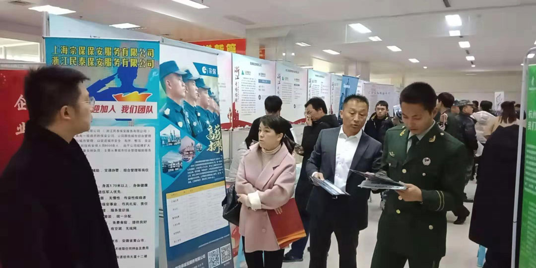 12月13日,長(zhǎng)三角地區(qū)退役軍人浙江專場(chǎng)招聘會(huì)上,上海宗保保安服務(wù)有限公司的攤位被前來(lái)咨詢的退役軍人圍得水泄不通,公司副總經(jīng)理侯留勇耐心地介紹著崗位情況。
