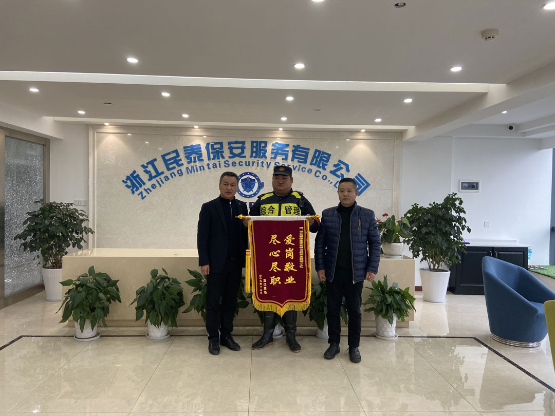 余經(jīng)理對公司駐開發(fā)區(qū)市容項(xiàng)目隊(duì)員在蘭江菜市場周邊的序化管控工作充分肯定,特保隊(duì)員工作認(rèn)真負(fù)責(zé),為市場減輕了壓力,使菜市場周邊環(huán)境得到有效的改善,特送錦旗一面以此感謝。