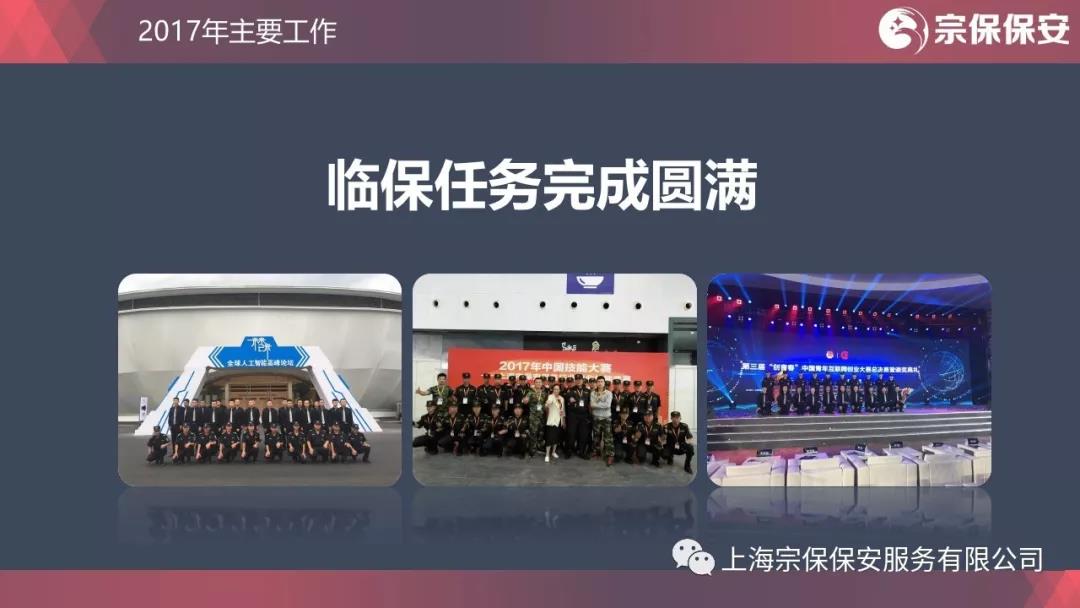 為百姓排憂解難,為政府保駕護(hù)航。上海國際馬拉松比賽、中國產(chǎn)業(yè)互聯(lián)網(wǎng)大會(huì)、中國服裝杭州峰會(huì),杭州春浪音樂節(jié),青年企業(yè)家峰會(huì),人工智能高端峰會(huì),“五一”、“十一”臨港系列活動(dòng),大型活動(dòng)安保一項(xiàng)接一項(xiàng),人氣爆棚,又秩序井然。活動(dòng)現(xiàn)場(chǎng)秩序維護(hù)、交通疏導(dǎo)、路線警衛(wèi)、停車場(chǎng)管理,處處都有宗保人的身影。有作為才能有地位。腳踏實(shí)地的宗保人用自己的實(shí)際工作贏得了社會(huì)的認(rèn)可和尊重。