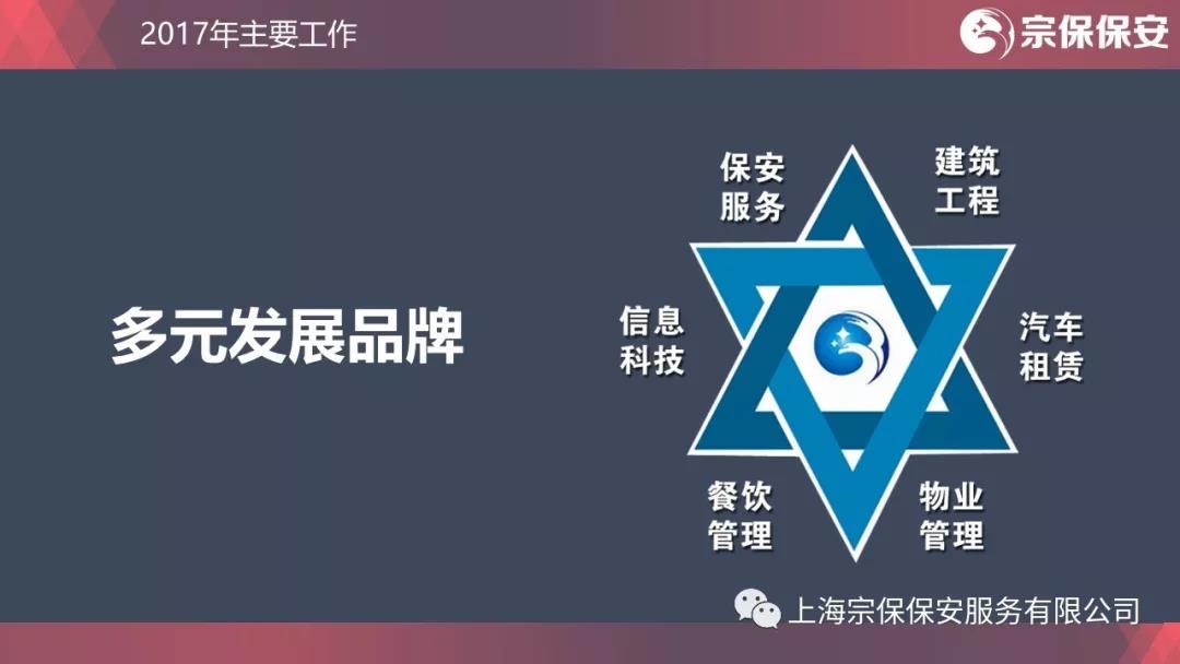 一花獨(dú)放不是春,百花齊放春滿園。目前,宗保旗下共有3家保安公司,1家餐飲管理公司,1家物業(yè)管理公司,1家信息科技公司,1家建筑工程公司。宗保品牌多元化發(fā)展道路初見成效。
