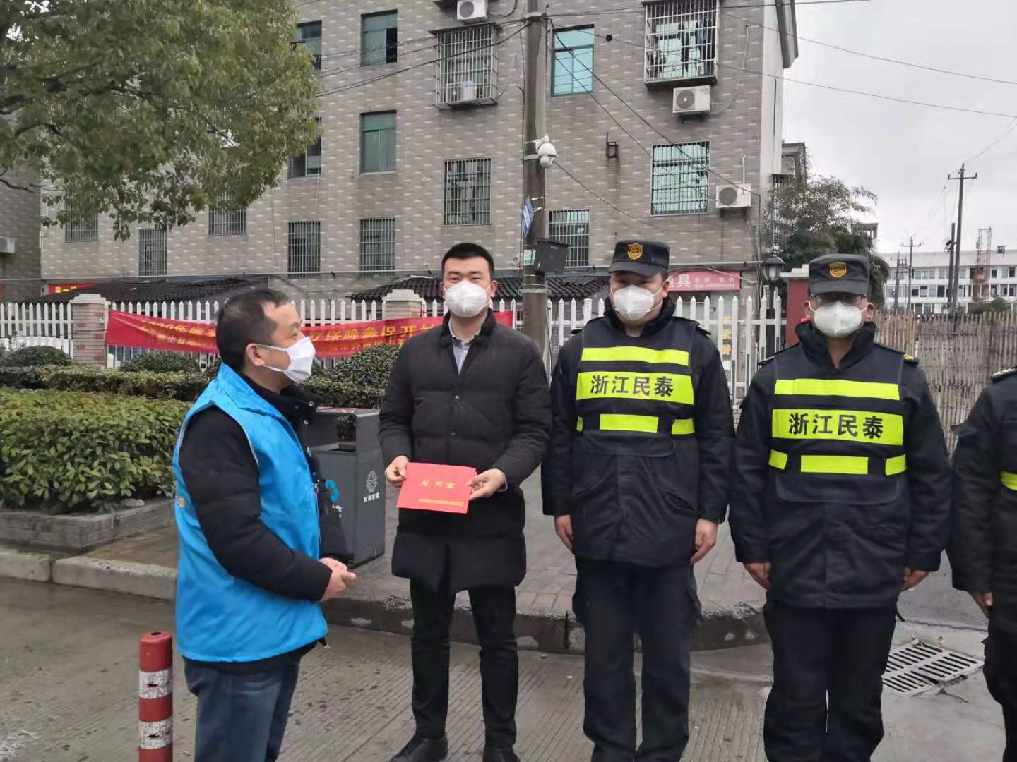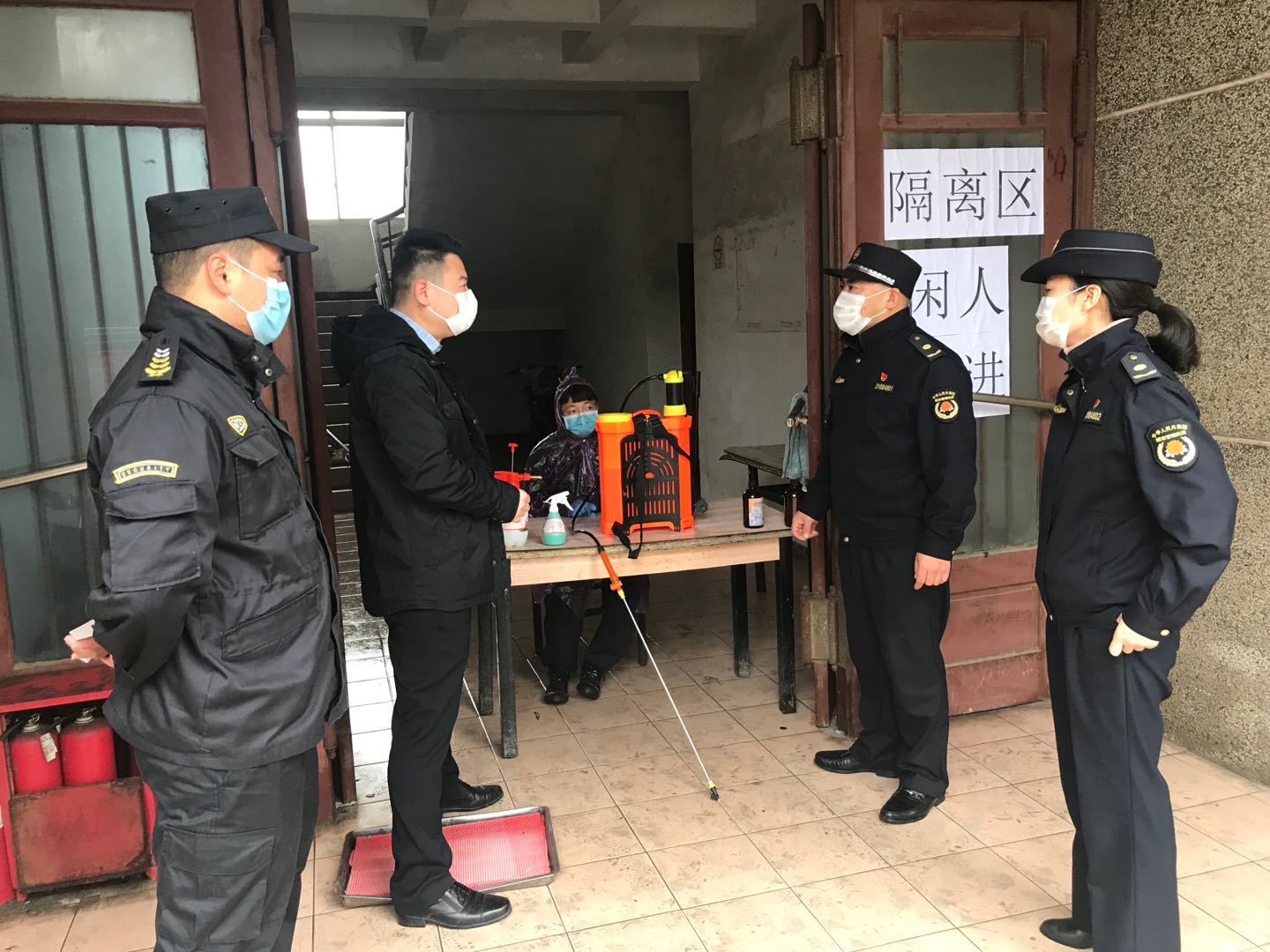 2月14日,大團城管隊長劉德信、教導員金琳到公司大團惠南宿舍檢查指導,看望慰問參與疫情防控的宗保員工。