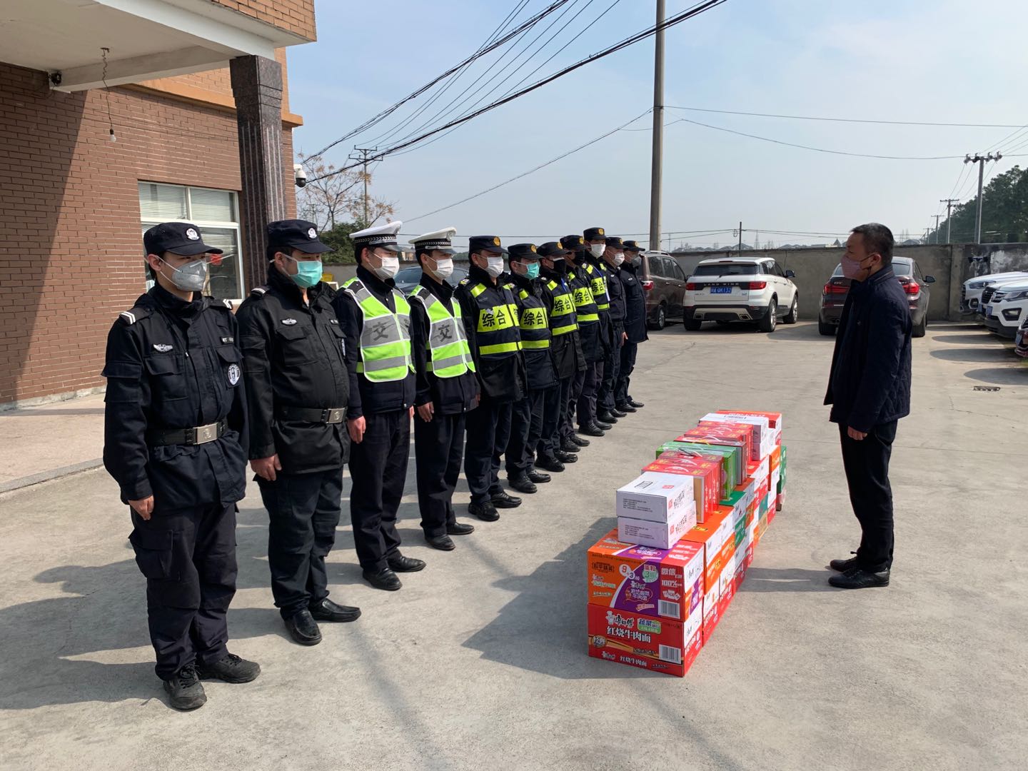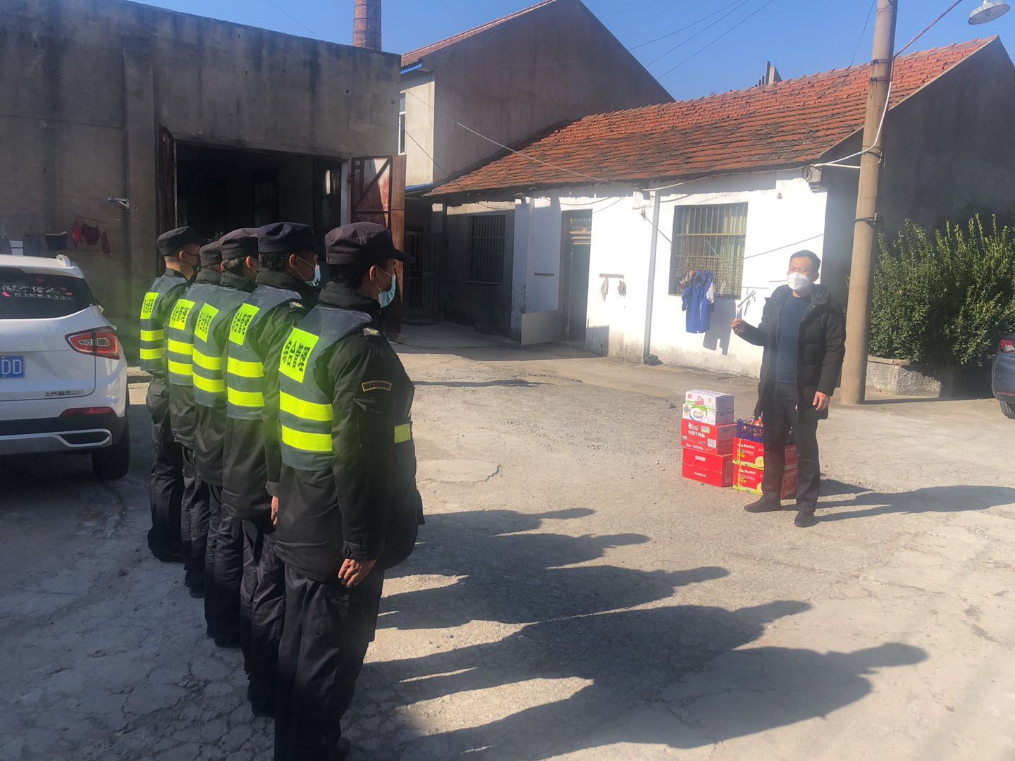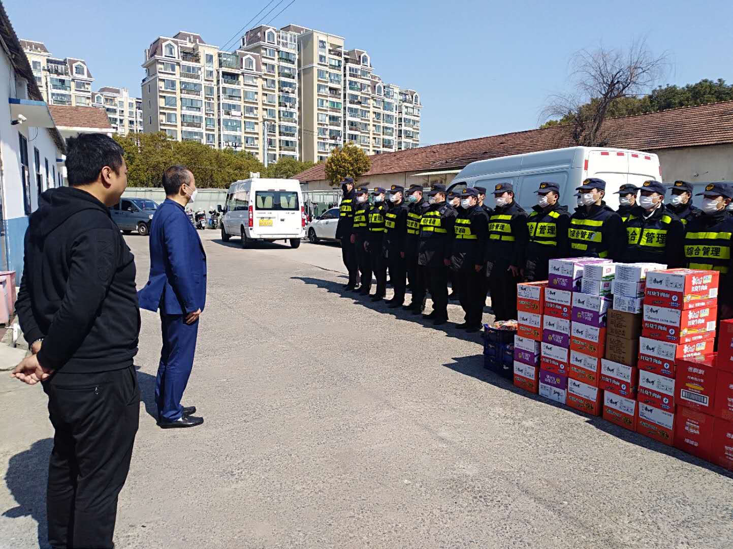 開展關(guān)愛慰問,為員工們送情送暖。疫情期間,公司領(lǐng)導(dǎo)明確責(zé)任分工,分區(qū)域、分項(xiàng)目包干,到一線工作崗位,看望慰問在崗員工,叮囑做好自我防護(hù),鼓勵(lì)隊(duì)員們?cè)俳釉賲枺倭⑿鹿Α=刂?5日,公司已累計(jì)發(fā)放方便面 1650箱,火腿腸 880箱,牛奶460箱,餅干300箱,飲料600箱,水果300箱。