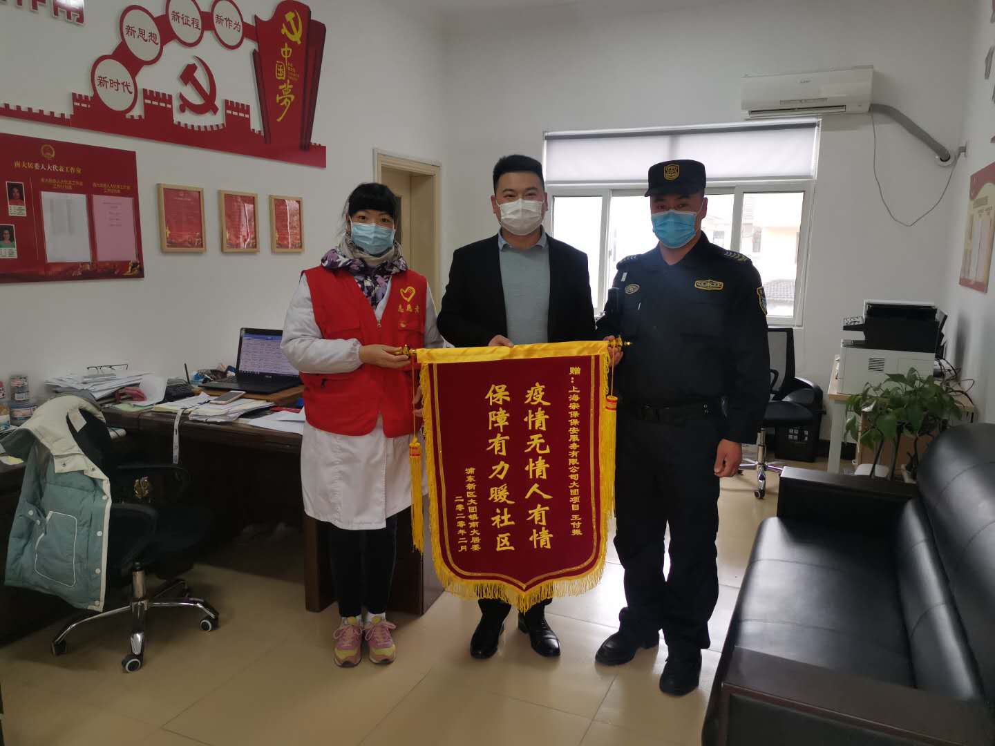2月28日,浦東新區(qū)大團(tuán)鎮(zhèn)南大居委送來一面錦旗,贊揚(yáng)公司駐大團(tuán)市容項(xiàng)目在疫情防控中的工作表現(xiàn),對(duì)全體隊(duì)員表示感謝。