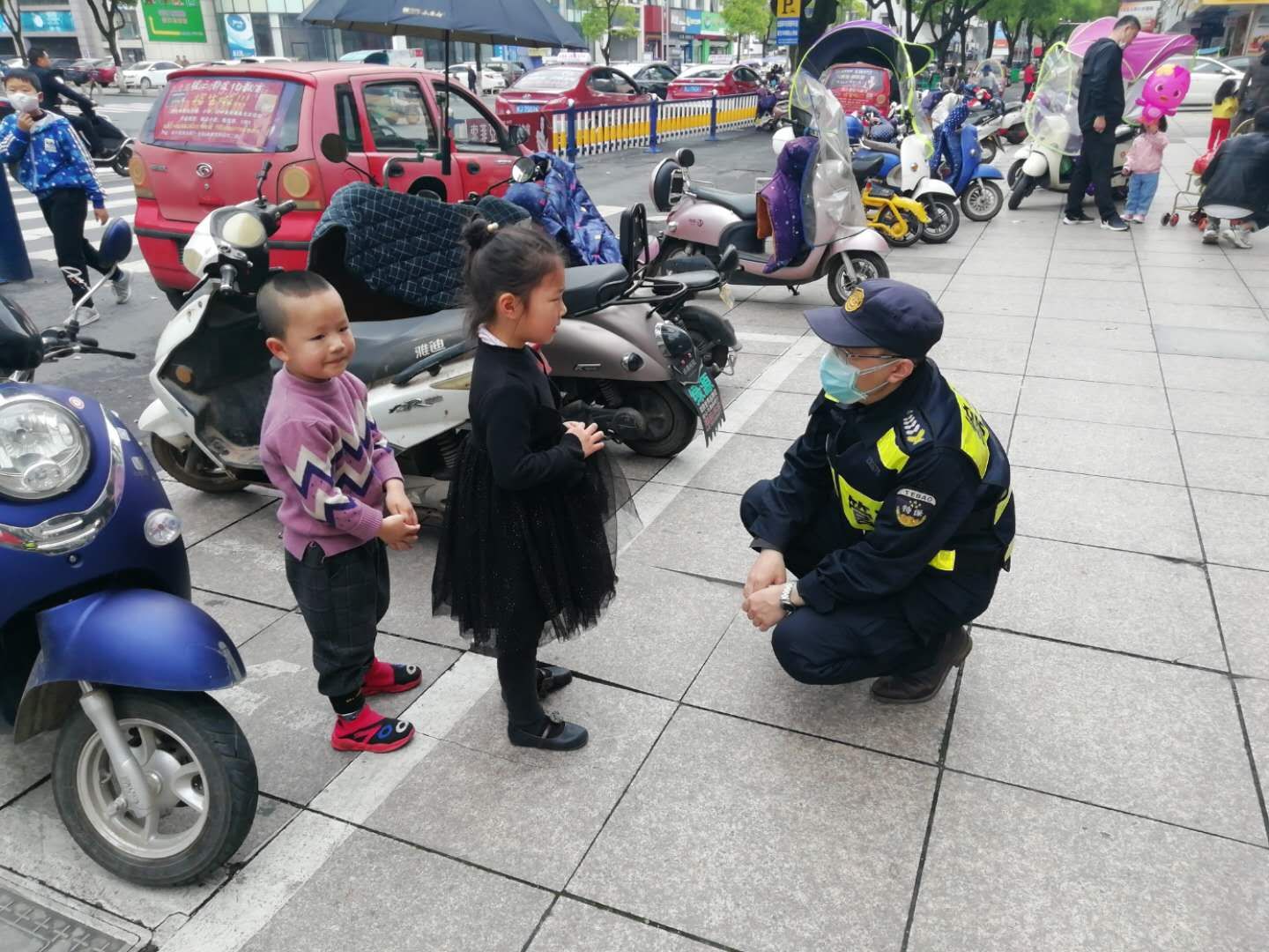 當天14:00,宗保公司駐黃山區(qū)域休寧市容項目隊員胡春生、韓斌斌巡查至中國黃金商店門口時,兩個小朋友東張西望、一臉驚慌失措的樣子。兩名保安員隨即上前詢問,怎么沒和媽媽在一起。兩個孩子一聽到媽媽,“哇”地大哭起來,“我們找不到媽媽了,找不到媽媽了......”原來孩子是和家里大人走散了。