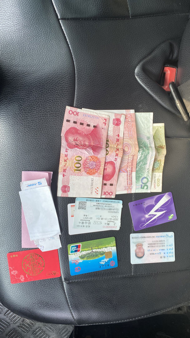 4月26日,宗保公司駐高行市容項目駕駛員王士兵開車經(jīng)過萊陽路衡安路交叉口時發(fā)現(xiàn)地上有個錢包,錢包內(nèi)有現(xiàn)金351元,身份證一張,銀行卡一張,交通卡一張及一些票據(jù)。王士兵將情況匯報給當(dāng)班組長,得到指令將車停放好,現(xiàn)場等待了15分鐘,未見有人前來尋找。由于還有任務(wù)在身,王士兵就將錢包送到派出所上交給值班民警,說明情況后繼續(xù)回到工作崗位。