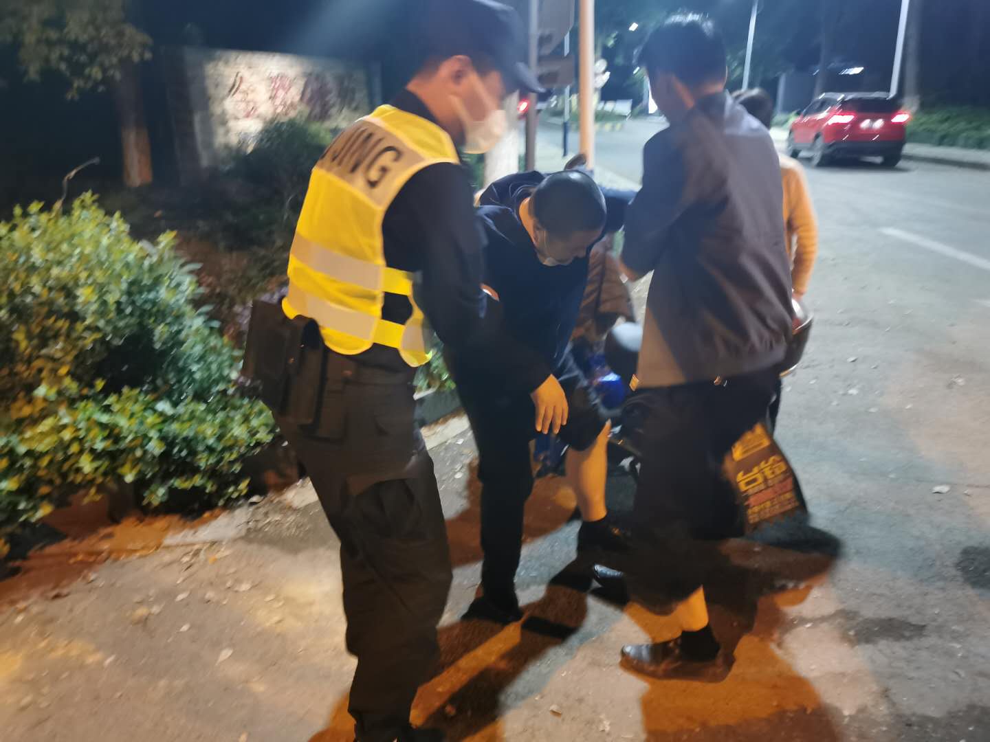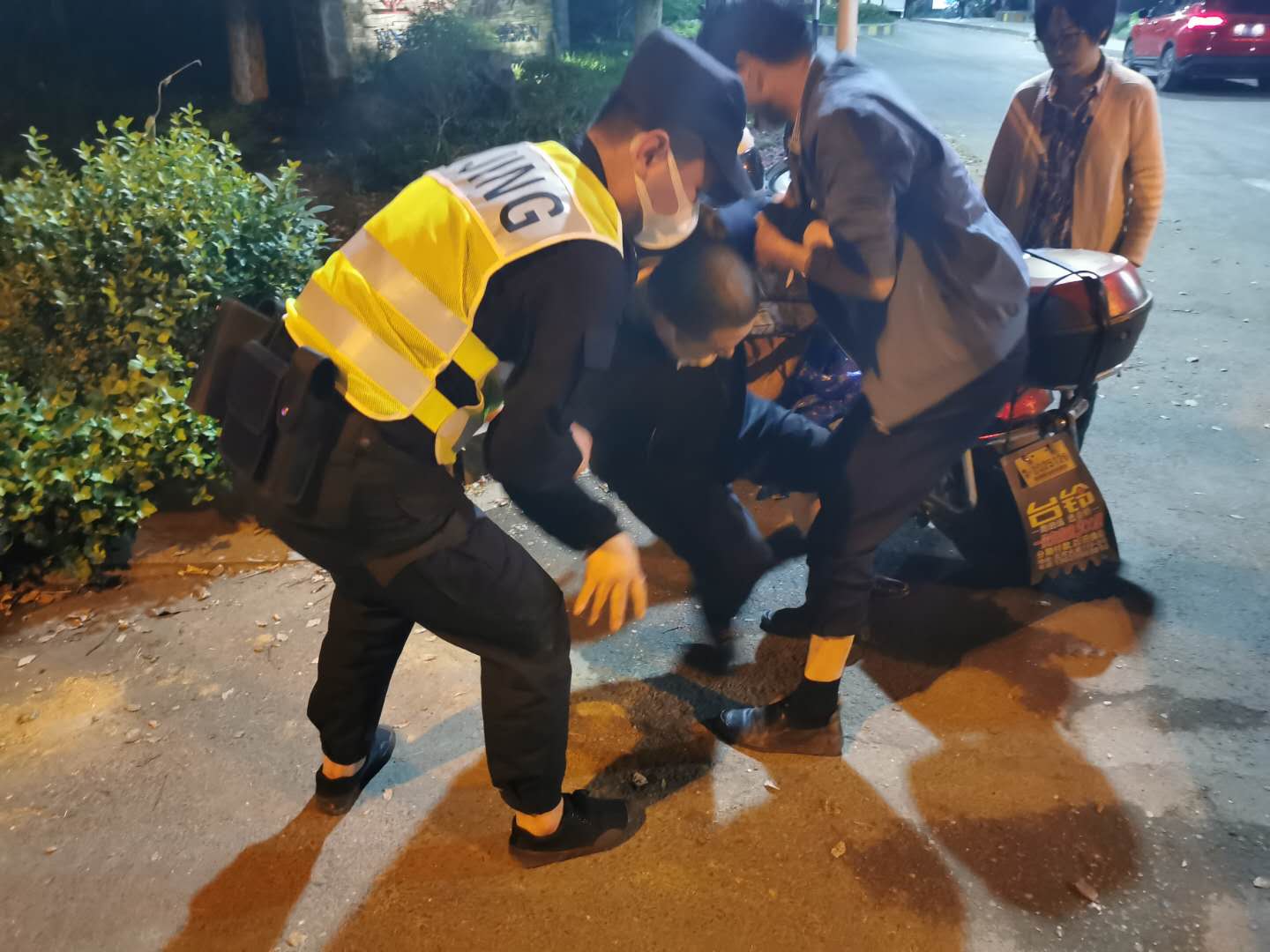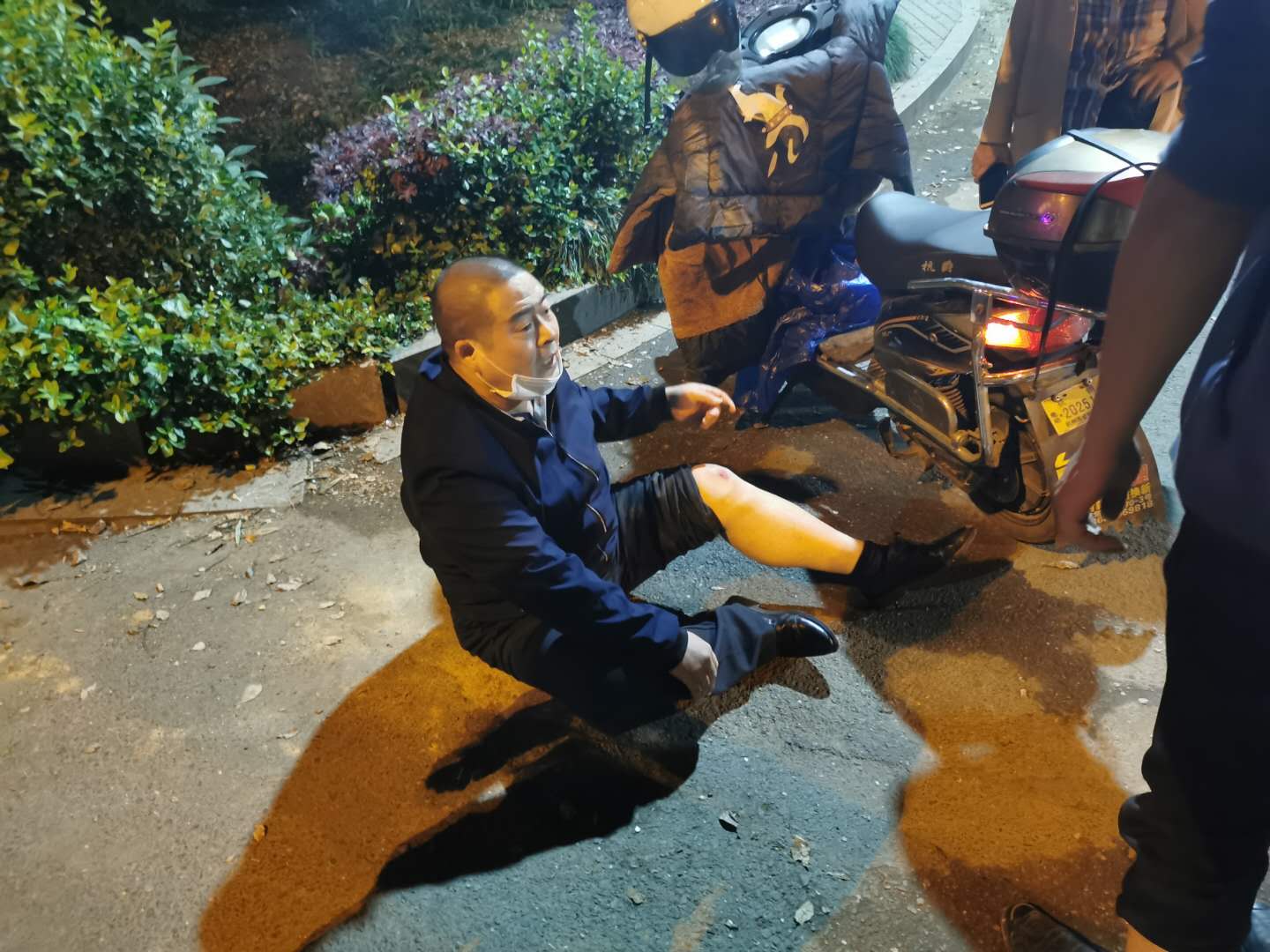 4月25日20:55,民泰公司駐閑林輔警項(xiàng)目隊(duì)員楊有福、宋昆鵬巡邏至天目路金都雅苑小區(qū)出口時(shí),看到一位大叔坐在地上,面露痛苦之色,旁邊還有一輛倒在地上的電瓶車。兩人趕緊上前,攙扶大叔起身的時(shí)候,檢查發(fā)現(xiàn)大叔的腳不能正常用力著地,腳踝受傷嚴(yán)重,膝蓋也有些許擦傷。